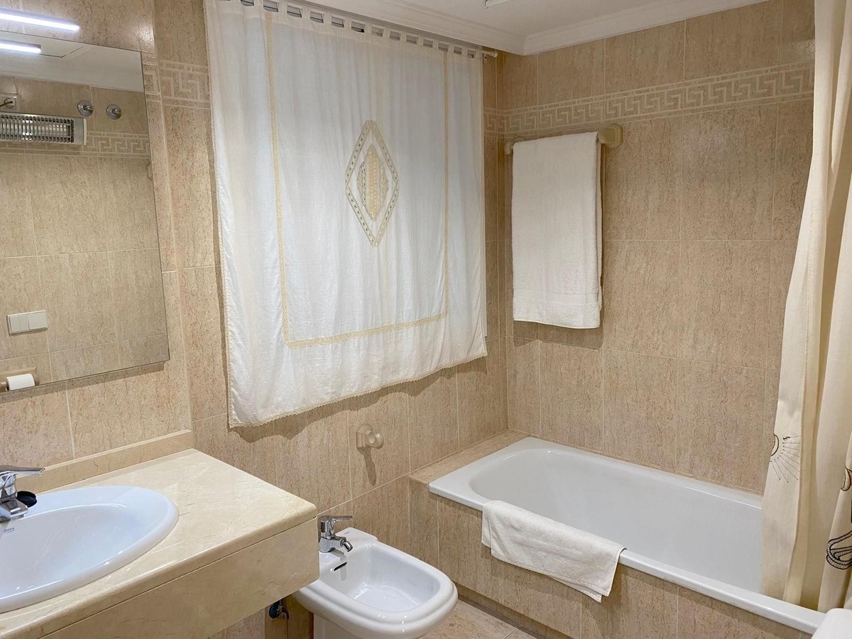 Con una superficie de 96m², dispone de dos dormitorios, un amplio salón-comedor, una cocina totalmente equipada y dos baños. Está completamente amueblado y cuenta con armarios empotrados, además de una gran terraza accesible desde el salón y ambos dormitorios. Ubicado en la planta baja de un edificio con ascensor, incluye garaje subterráneo con una amplia plaza de aparcamiento y un trastero privado de gran tamaño. La urbanización ofrece seguridad y portero las 24 horas, con videovigilancia en todo el recinto exterior. Situado en una zona muy tranquila y rodeada de vegetación, cuenta con una gran piscina. Su ubicación es inmejorable: a tan solo 1 minuto de supermercados, paradas de autobús, farmacias y colegios; a 5 minutos a pie de centros comerciales y restaurantes; a 3 minutos en coche del centro de Marbella y a solo 10 minutos caminando del paseo marítimo y la playa.