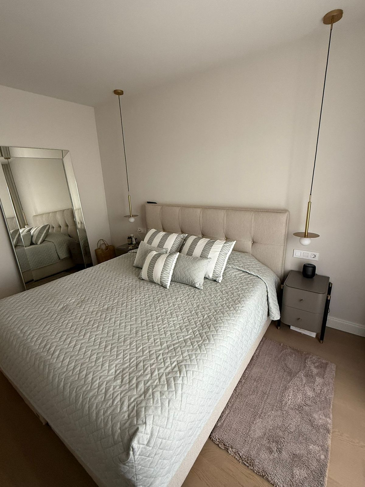 En su interior, el apartamento ofrece dos dormitorios amplios y con un diseño exquisito, ambos con abundante luz natural y un ambiente acogedor. Los dos baños contemporáneos cuentan con acabados de alta calidad y un diseño limpio y elegante. La cocina americana, totalmente equipada, se integra a la perfección con el salón-comedor, creando un espacio ideal tanto para el día a día como para recibir invitados con facilidad.