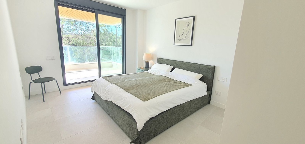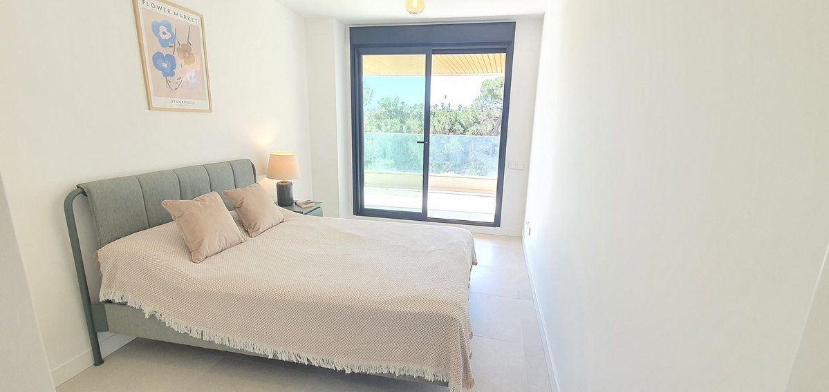 Ambos dormitorios son de buen tamaño, destacando el dormitorio principal con baño en suite y acceso directo a la terraza. Con acabados de alta calidad en toda la vivienda, el apartamento combina diseño moderno, confort y funcionalidad.