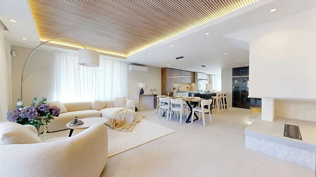 La casa dispone de 3 amplios dormitorios y 3 baños, ideal para familias o como inversión. El luminoso salón se conecta directamente con el jardín y la piscina comunitaria, creando un espacio perfecto para relajarse y disfrutar del sol. La cocina de concepto abierto está totalmente equipada con materiales de alta gama, garantizando funcionalidad y estilo.