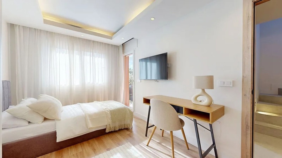 Descubre este exclusivo chalet pareado recién renovado, ubicado en la tranquila urbanización Monte Biarritz, una de las zonas más demandadas de Estepona. Con un diseño moderno y luminoso, esta propiedad renovada en 2025 cuenta con una superficie de 204 m² distribuidos en tres plantas, ofreciendo un ambiente perfecto para disfrutar del estilo de vida mediterráneo.