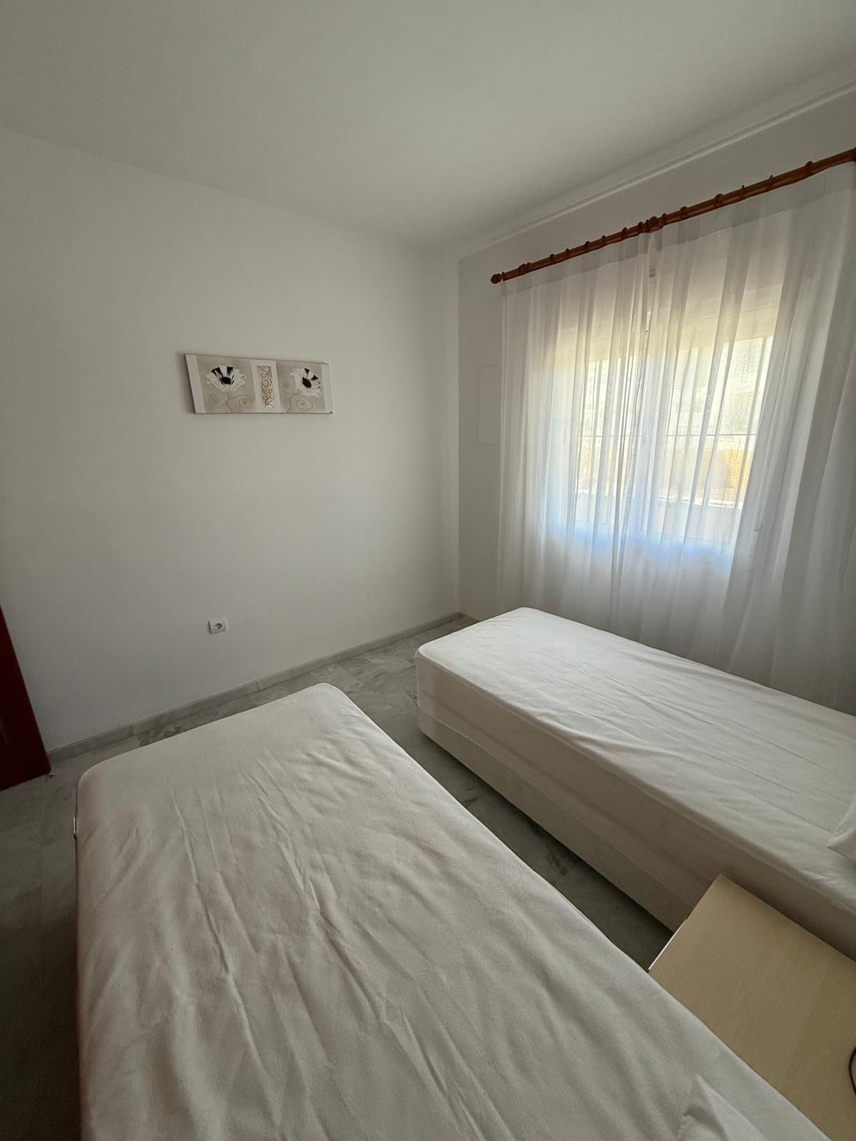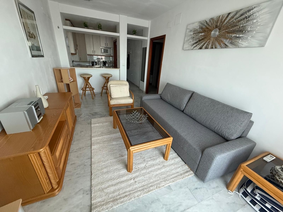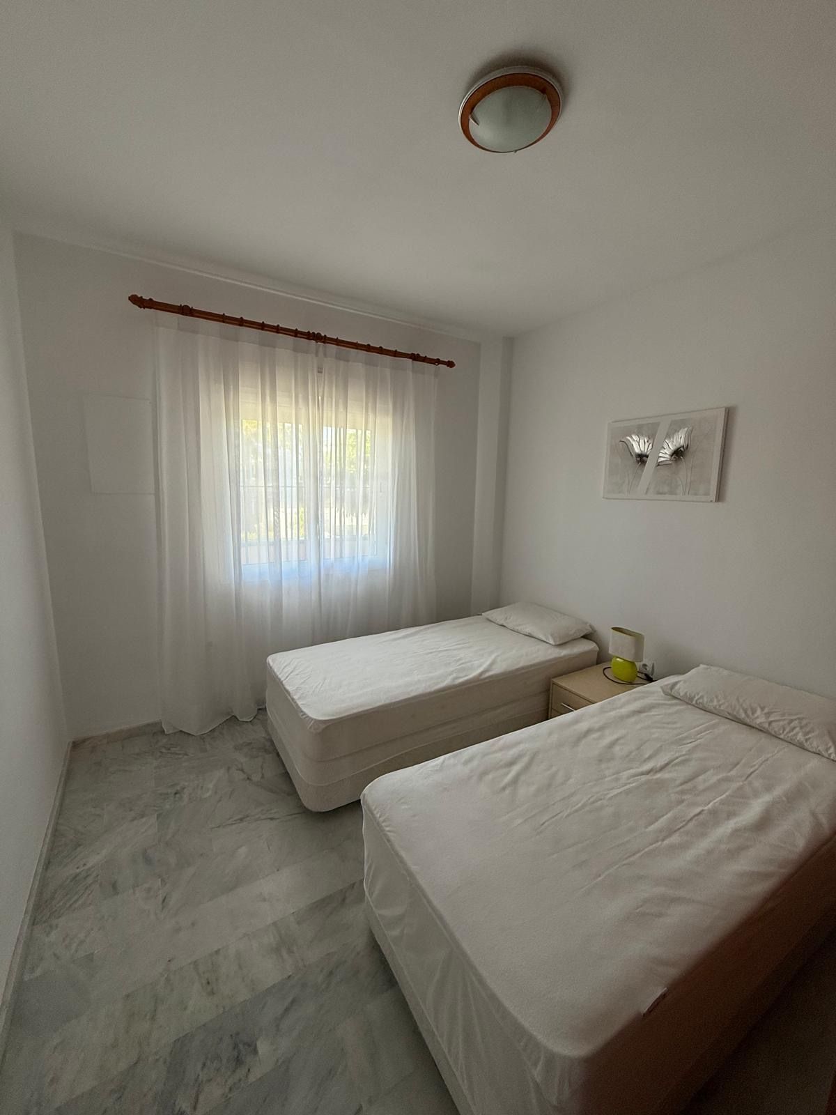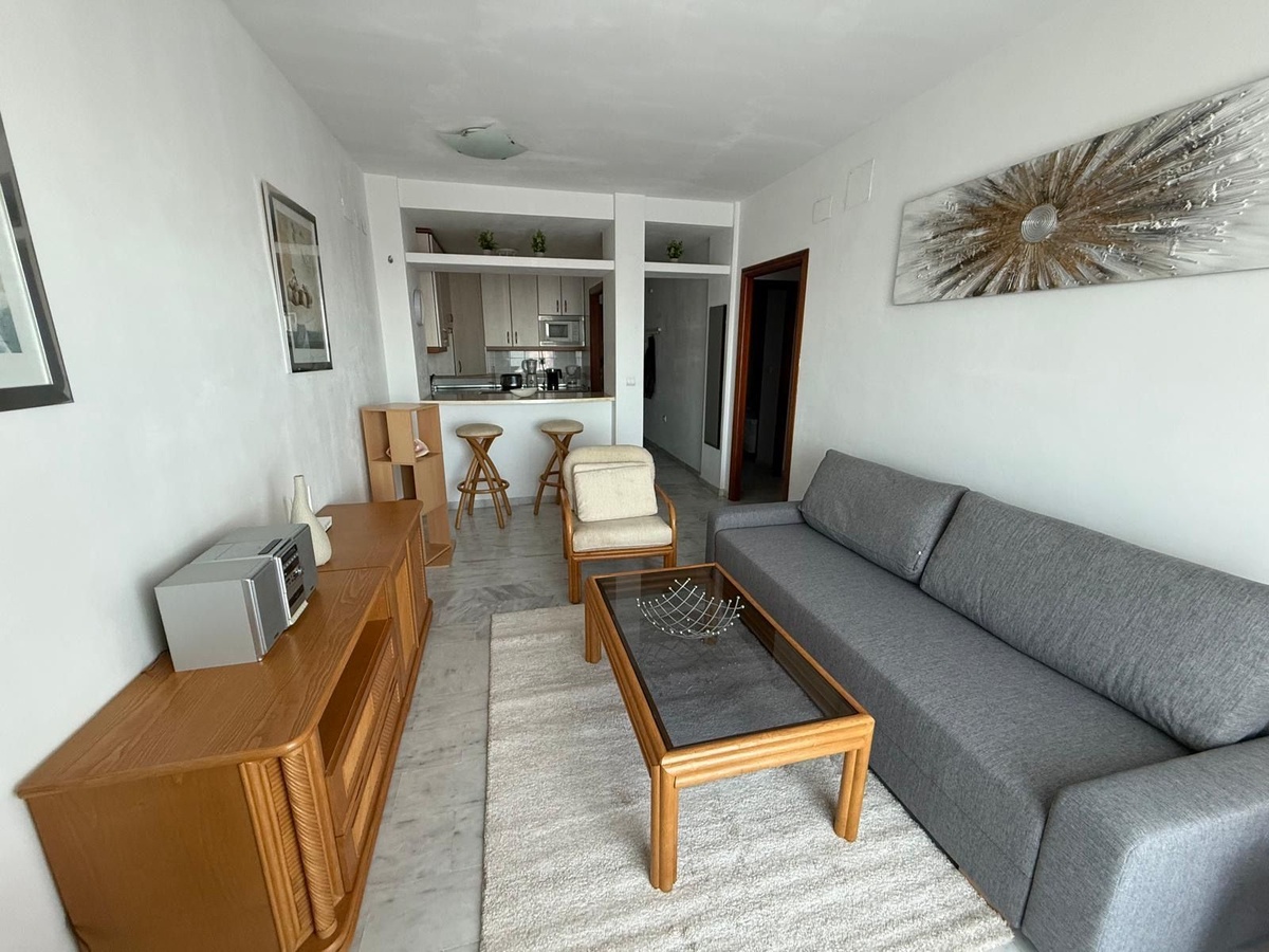 Se alquila apartamento de dos dormitorios en la zona de El Faro (Fuengirola), situado en un complejo residencial cerrado. La vivienda cuenta con dos dormitorios, dos baños, salón con cocina abierta y una terraza con vistas a los jardines tropicales y la piscina. Urbanización cerrada con plaza de aparcamiento subterráneo incluida. Ubicación ideal, cerca de todos los servicios e infraestructuras.