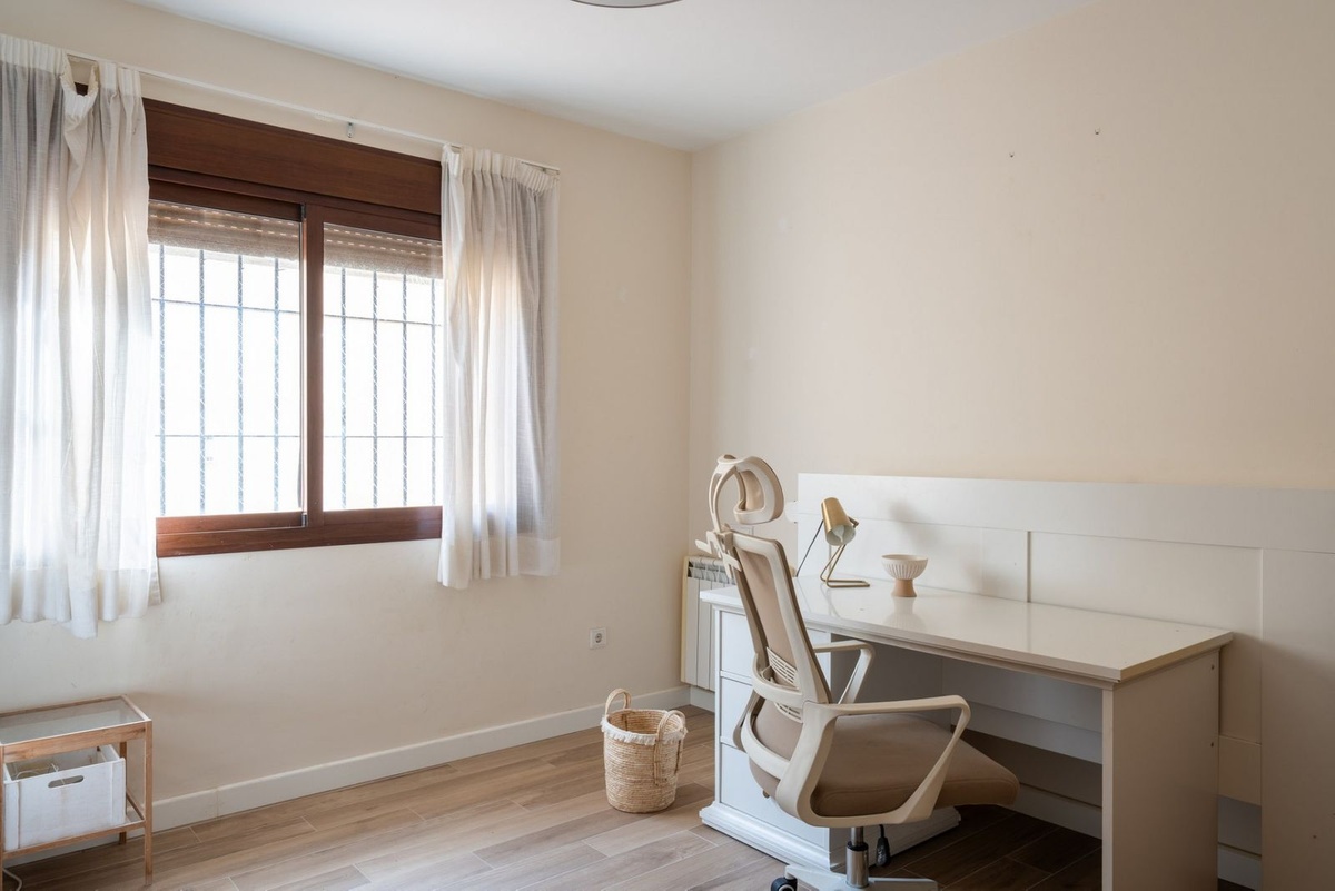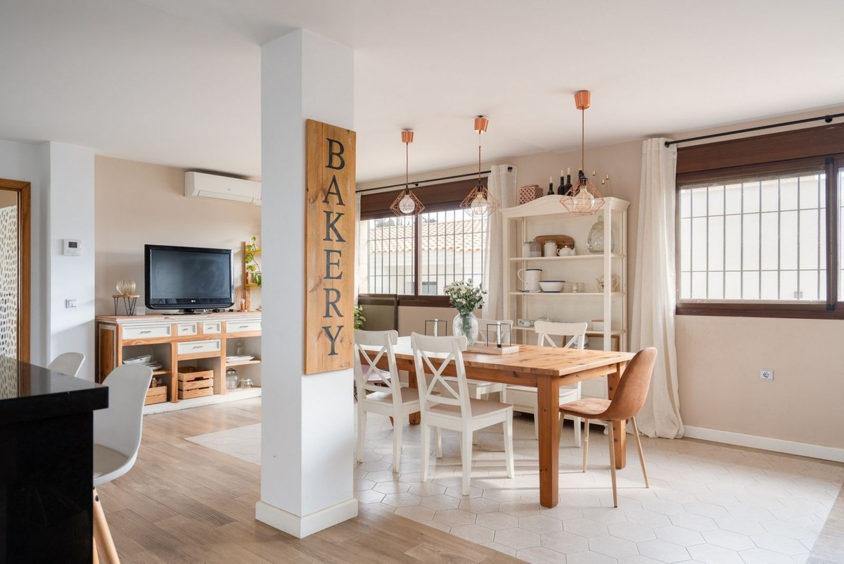 Everyday comfort is further enhanced by abundant storage space, air conditioning, ceiling fans and solar panels. Outside, the home is surrounded by a private, low-maintenance tiled courtyard, enclosed by walls for privacy. Here, you will find a swimming pool, multiple terrace areas oriented to enjoy the sun throughout the day, and parking space for two vehicles.