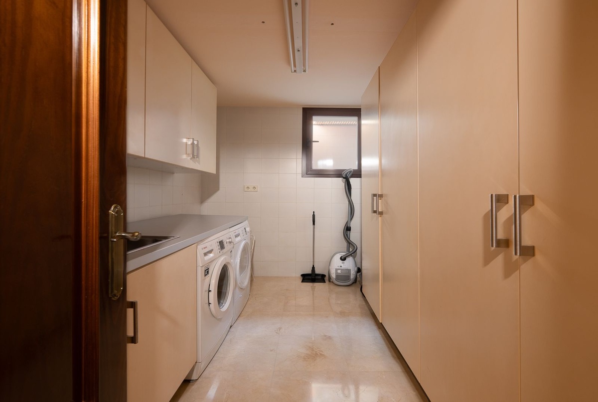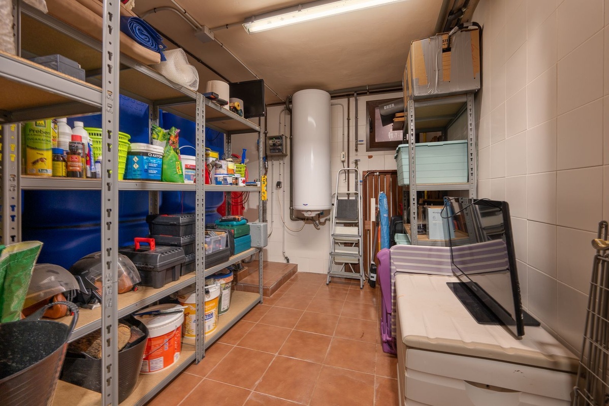 The lower (garden) level includes a traditional bodega/cave area, storage room, laundry room, and a Finnish sauna, as well as an open-plan TV or games room—perfect for relaxation and entertainment.