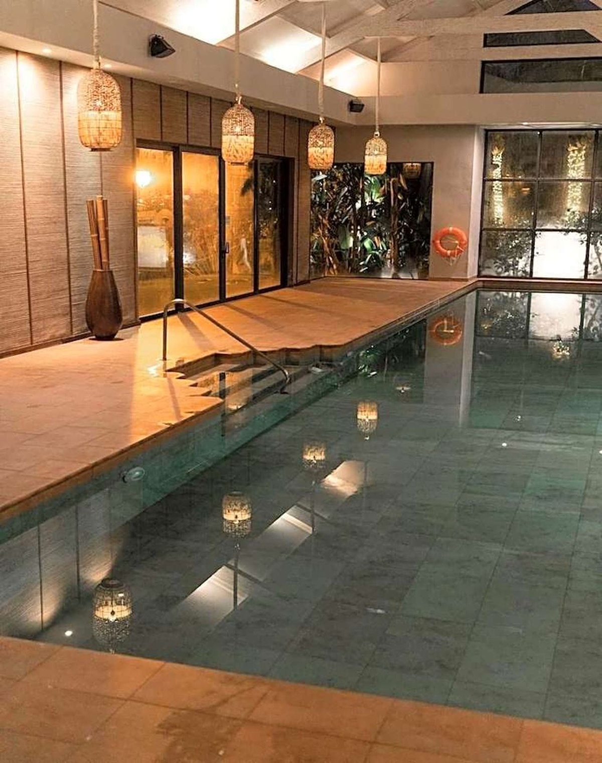 Baño de lujo con jacuzzi y ducha a ras de suelo.