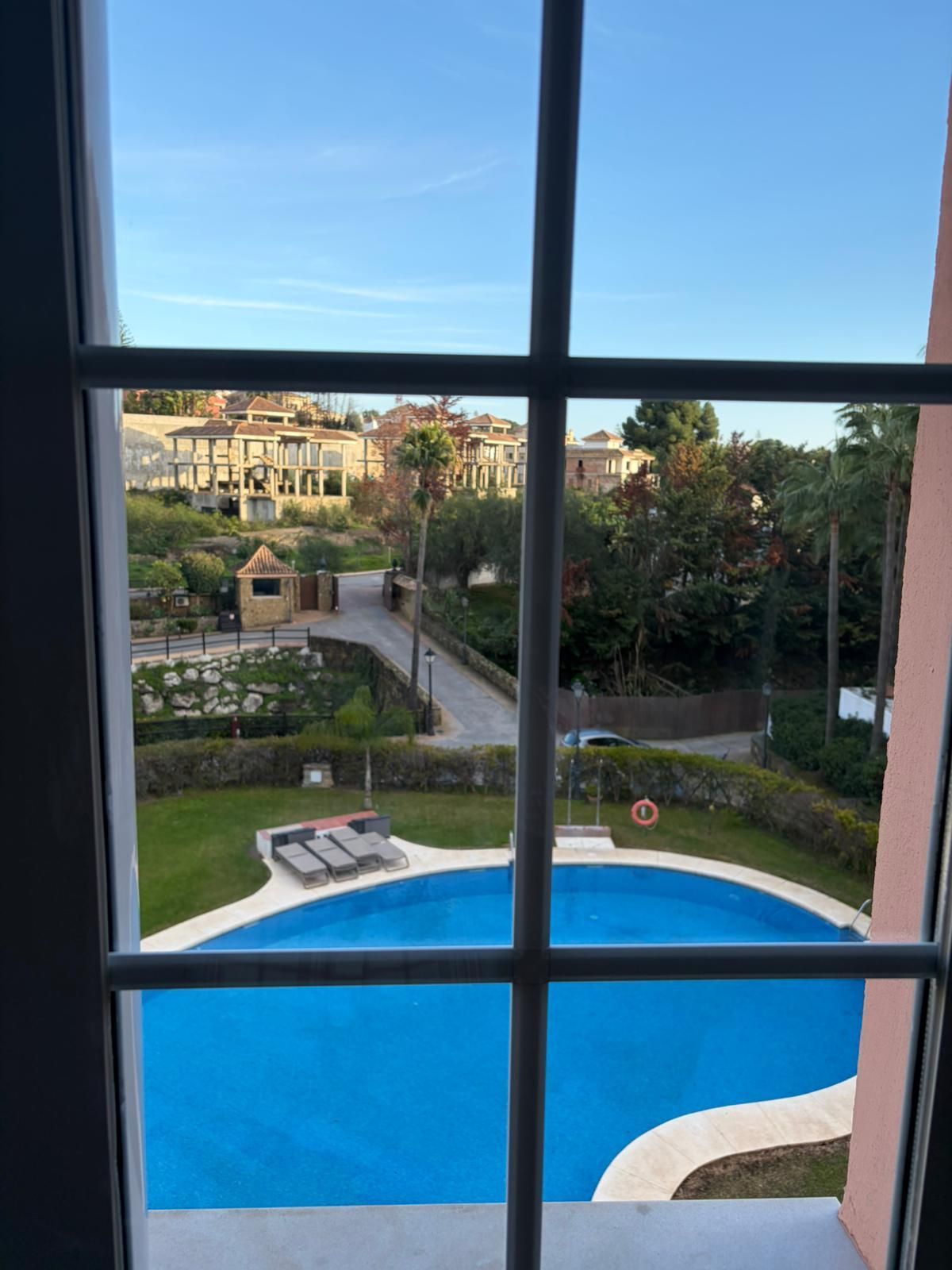 La propiedad cuenta con 3 amplios dormitorios, 2 baños, un salón luminoso y acogedor con grandes ventanales que aportan abundante luz natural, y una cocina totalmente equipada. Desde la vivienda se disfrutan bonitas vistas a las zonas ajardinadas y a la piscina, creando un ambiente tranquilo y relajante. Además, incluye una plaza de aparcamiento privada para mayor comodidad.
