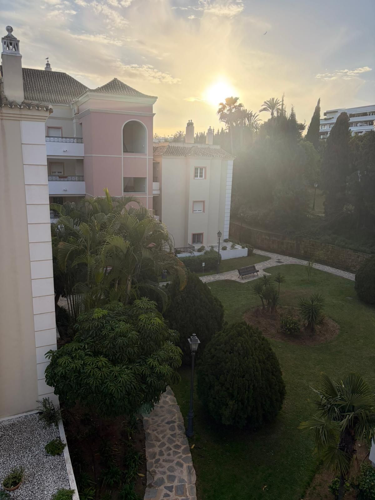 Elegante apartamento de 3 dormitorios ubicado en la exclusiva urbanización Rivergarden, en Nueva Andalucía, con agradables vistas a la piscina comunitaria y a los jardines de la urbanización.