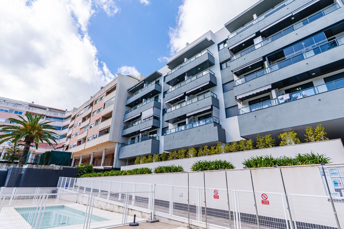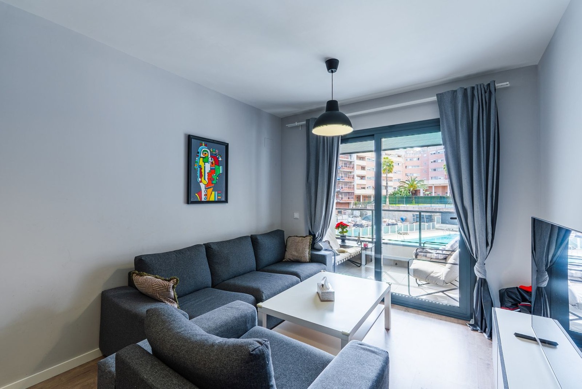 Grandes puertas correderas conducen a una terraza privada con vistas a la piscina comunitaria, un lugar perfecto para disfrutar de un café por la mañana, cenar al aire libre o relajarse por la noche bajo el sol de la Costa del Sol.