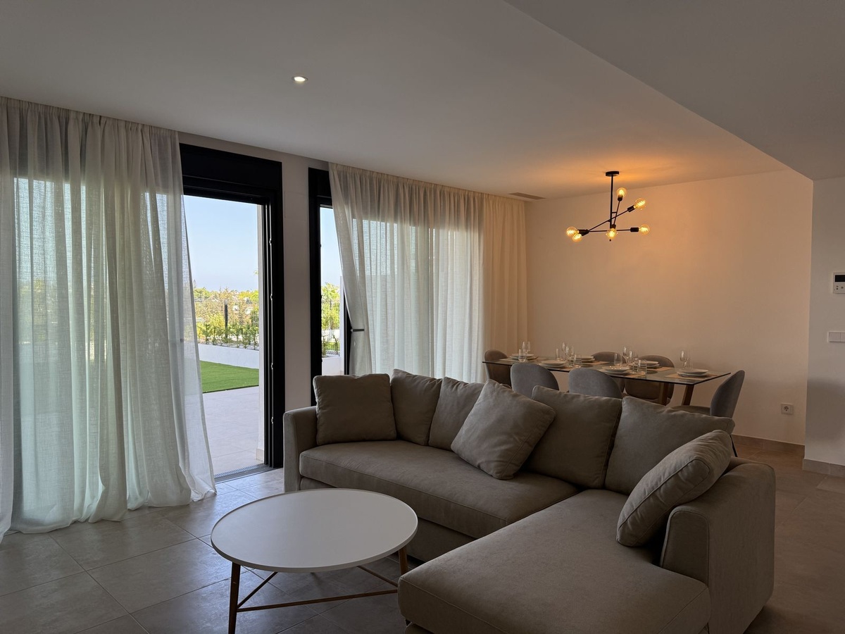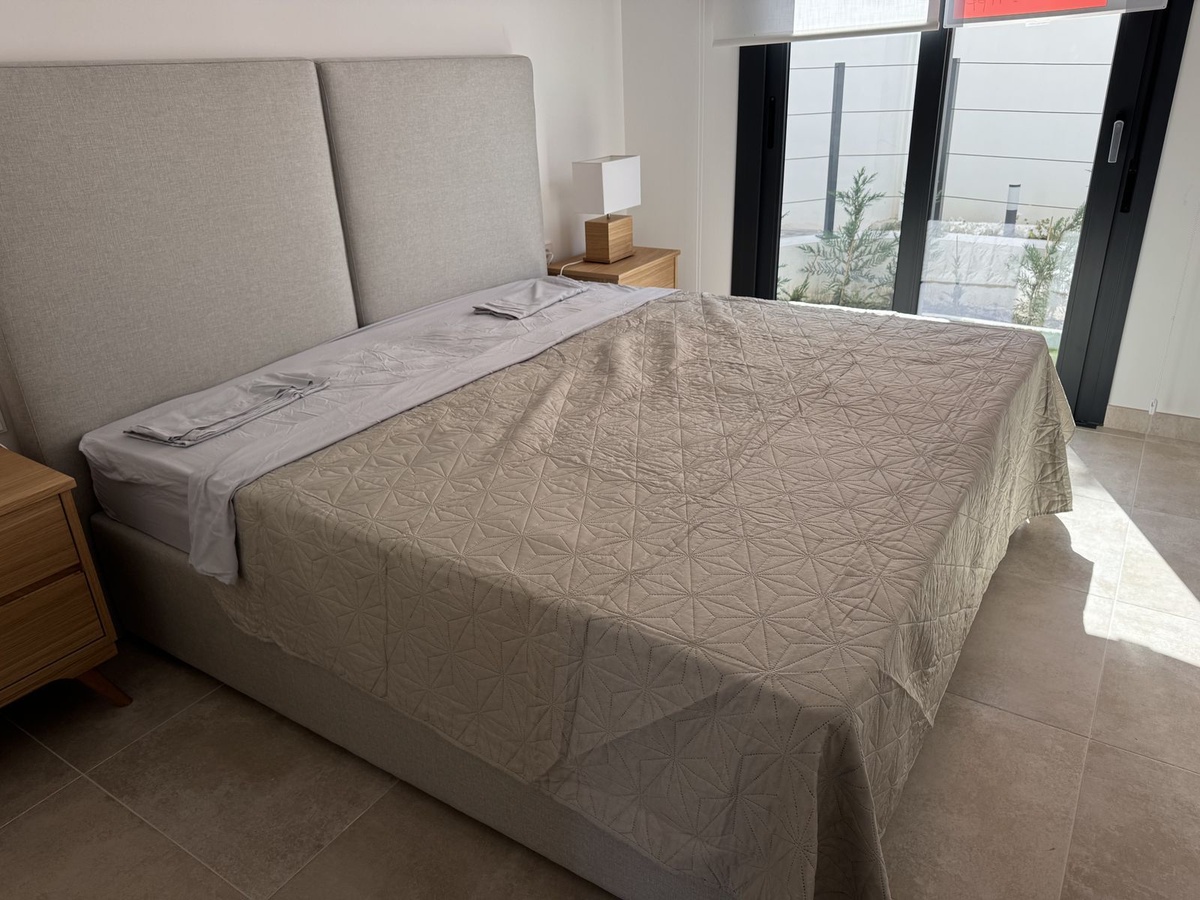 El apartamento se encuentra en la planta baja y el edificio dispone de ascensor. La superficie total es de 115 m², y la terraza tiene 33 m². La orientación este permite disfrutar del suave sol de la mañana. El apartamento tiene 3 dormitorios y 2 baños, un interior moderno y luminoso, y está completamente amueblado. Dispone de aire acondicionado (frío/calor). El complejo se puso en funcionamiento en 2025, el apartamento es completamente nuevo y nadie ha vivido en él.