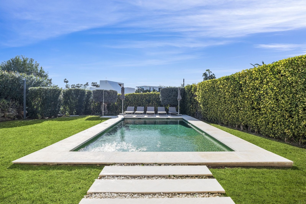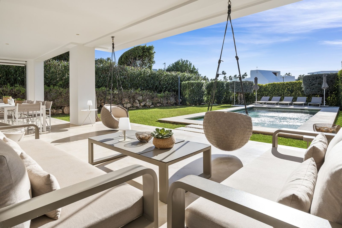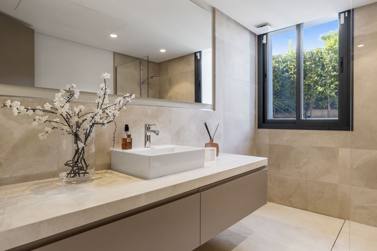 Fuera, el estilo de vida realmente cobra vida. Amplias terrazas, refinadas zonas de salón al aire libre y una piscina privada crean el escenario perfecto para entretener o simplemente relajarse bajo el cielo andaluz. Ya sea albergando elegantes veladas de verano o disfrutando de una tranquila mañana al sol, este hogar se adapta sin esfuerzo a cada estado de ánimo.