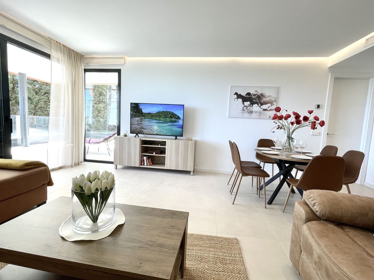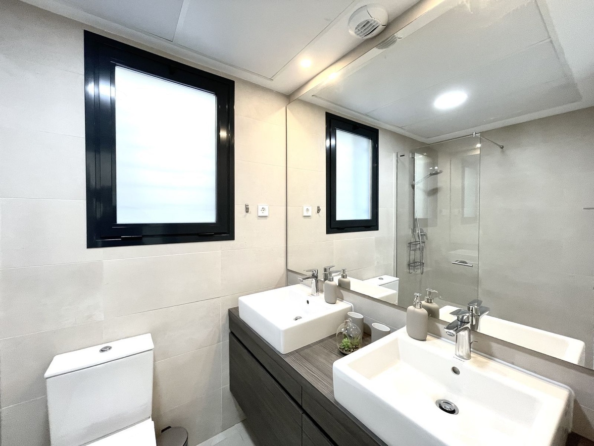 Luxury 3 bedroom apartment in the Middel Views Urbanization, beautifully landscape on the coast of Costa del Sol. In Norwegian, the six letters making up the word Middel are used to refer to the Mediterranean. A community is comprising of 45 homes. From the large terrace and the roof-top terrace you will enjoy striking panoramic views of the horizon over the sea and its fragrance will slip in through your windows. Located in Fuengirola/ Carvajal just minutes away from beautiful beach, restaurants, shops, exclusive beach clubs, train station and El Higueron luxury resort style development. The exclusive Urbanization has 2 large swimming pools with salt water chlorination, state the art gymnasium, sauna, solarium area, communal vegetable garden. There is a covered car parking and spacious storage room included, The lounges and bedrooms are sea-facing with a spacious terrace that is protected with the glass enclosure. This space is ideal for organizing get-togethers with friends or enjoying some time relaxing opposite the Mediterranean. Flooring in the hall, living rooms, bedrooms and passageways is in porcelain stoneware, kitchen equipped with upscale appliances • Induction hob. • Extractor fan.• Electrical oven. • Refrigerator.• Dishwasher and washing machine. • Compact quartz worktop.• Compact quartz backsplash.• Sink fitted with a mono mixer tap. All bathrooms are fitted with mono mixer taps, mirrors and glazed porcelain bathroom suites in a contemporary white design. The main bathroom will come with a glazed washbasin and vanity unit and a shower tray with screen and mono mixer faucet. All the terraces come with a water inlet and drainage system, they will also have lighting and a power and television socket.