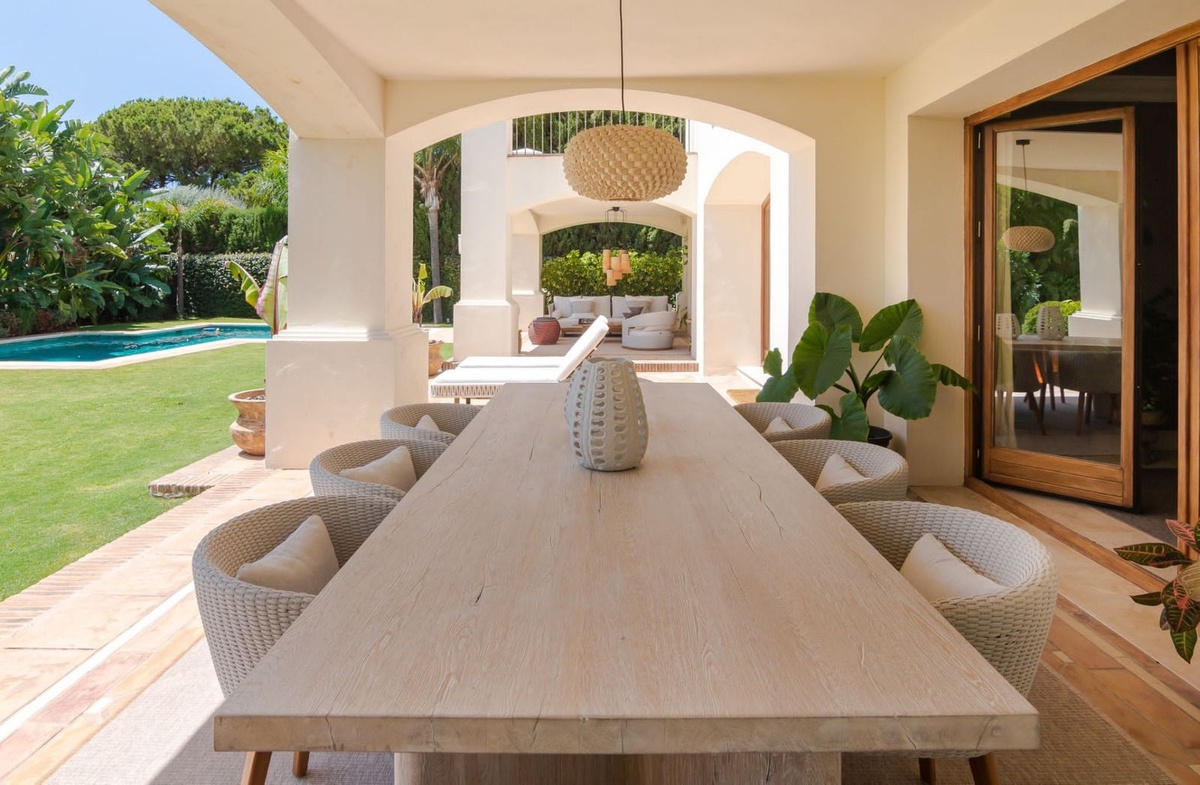 Elegante villa familiar construida con diseño exquisito y una gran atención al detalle en Balcones de Sierra Blanca, una exclusiva zona residencial situada justo encima de Marbella ciudad y a poca distancia en coche de la playa y el centro. Esta villa orientada al sureste se distribuye en cuatro niveles e incluye, a nivel de entrada: vestíbulo con aseo de invitados; amplio salón con chimenea conectado al comedor formal; acogedora cocina con zona de desayuno; acceso al jardín maduro con piscina de agua salada; dormitorio de invitados en suite. Arriba: zona de biblioteca; gran suite principal; 2 dormitorios con baño compartido. El ático de 60 m2 podría convertirse fácilmente en un dormitorio adicional (está preparado para construir un baño) y actualmente se utiliza como despacho y sala de juegos. Sótano: garaje; zona de trastero; alojamiento para el personal con dormitorio en suite; aseo; lavadero. Construida con las mejores calidades y con los siguientes extras, entre otros: aire acondicionado frío y calor, calefacción por suelo radiante, ventanas de teca Iroko con doble acristalamiento Climalit, suelos de mármol en toda la planta baja, suelos de madera en la planta alta y depósito de agua de 5.000 litros.