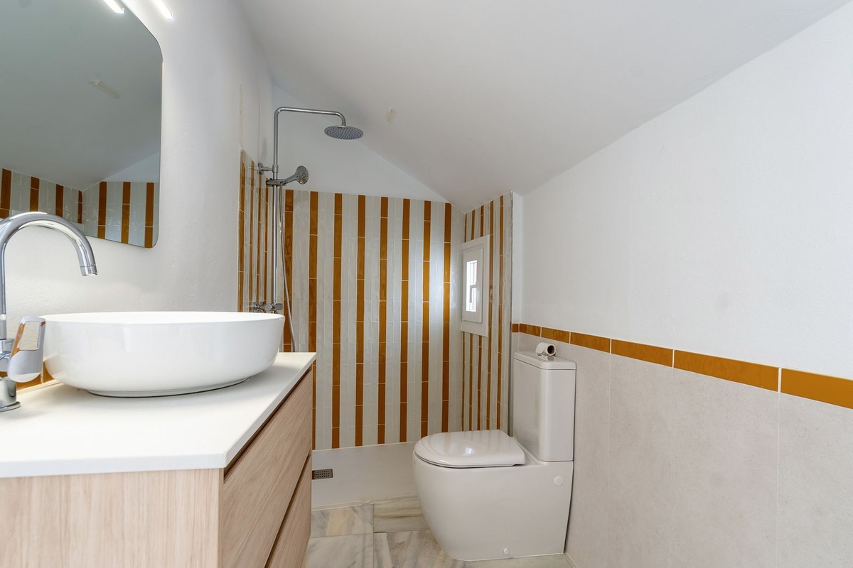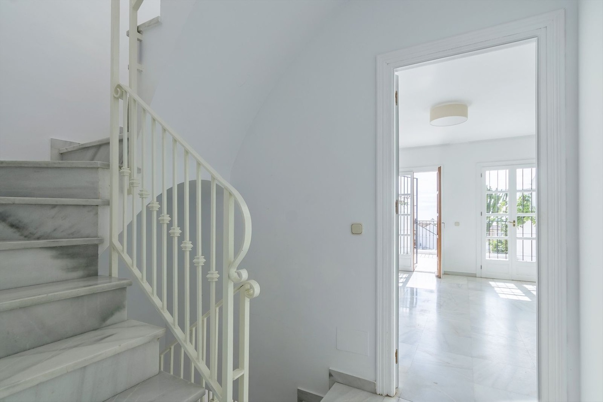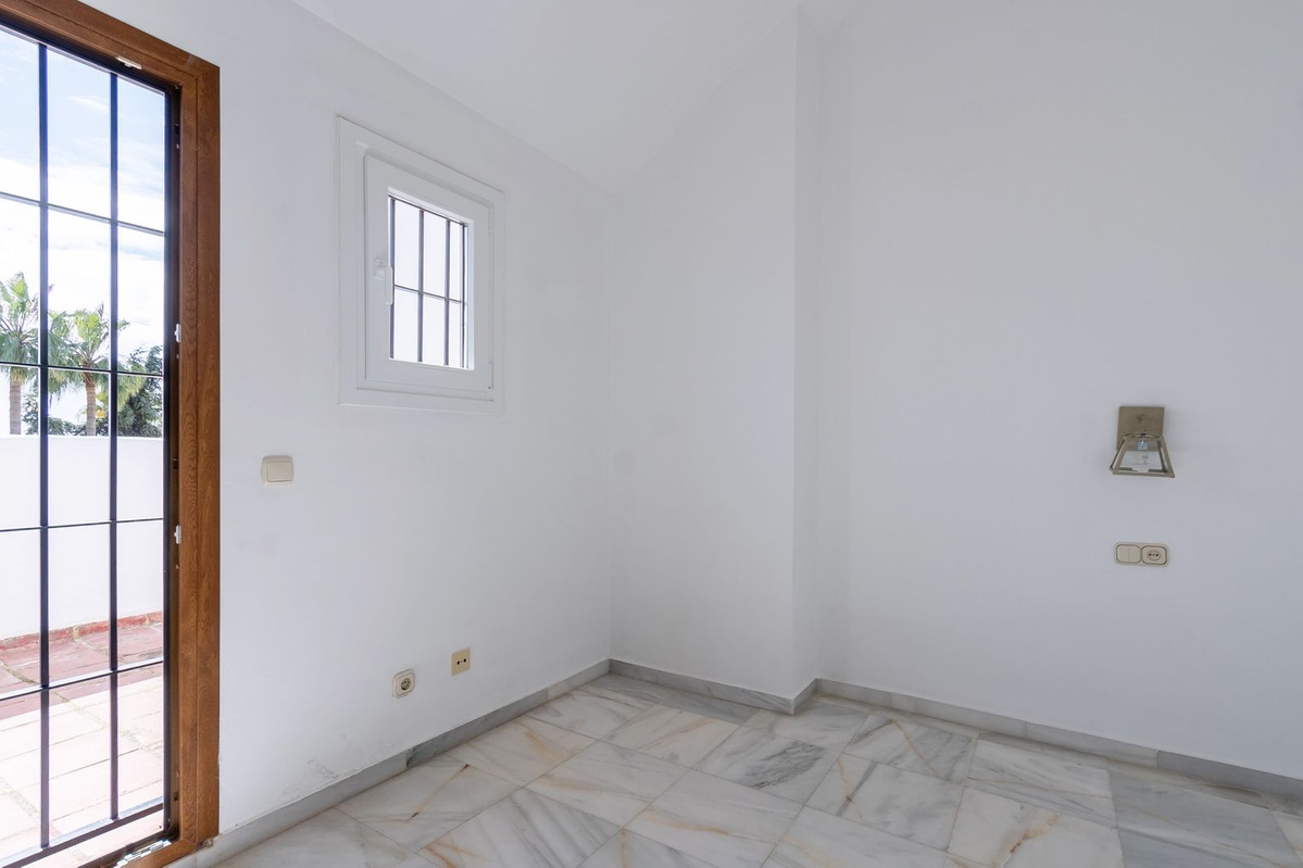 La planta superior alberga un tercer dormitorio con techos abuhardillados y su propia terraza privada, desde donde se pueden disfrutar vistas panorámicas sobre Nagüeles.
