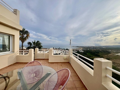 One Level Penthouse offering Andalucian style garden & swimming pool views with a glimpse of the Sea, encapsulated by hills and tropical palms and enviably ...