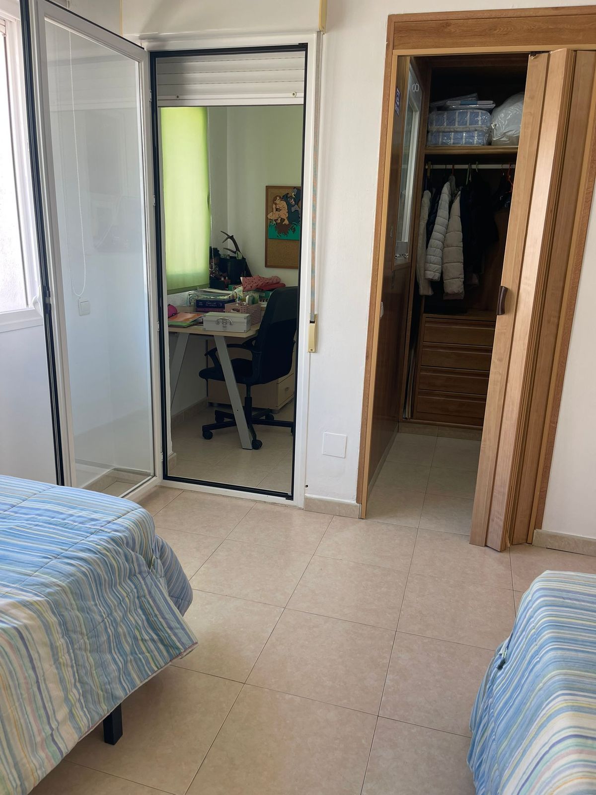 On the first floor, you’ll find two large bedrooms—one with a very spacious private terrace overlooking the park, and the other featuring a walk-in wardrobe and separate office space. This level also includes a full bathroom.