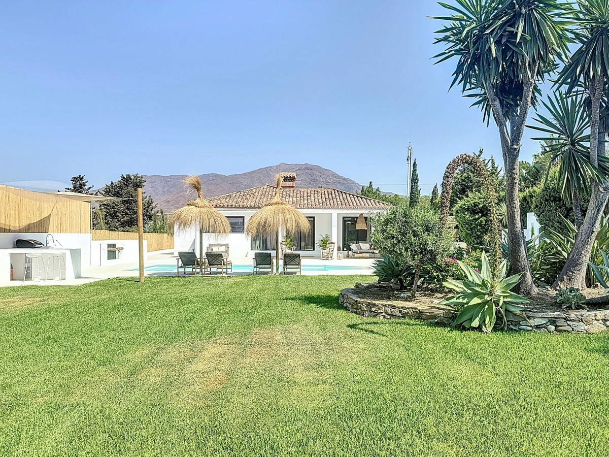 La casa principal cuenta con un amplio salón con chimenea de estilo andaluz, una cocina abierta artesanal con mobiliario de madera maciza y electrodomésticos nuevos de alta gama, dos dormitorios con baños en suite y un aseo de invitados. Desde el salón y la cocina se accede directamente a una gran terraza soleada y a la piscina privada completamente renovada, rodeada de jardines con riego automático e iluminación nueva.