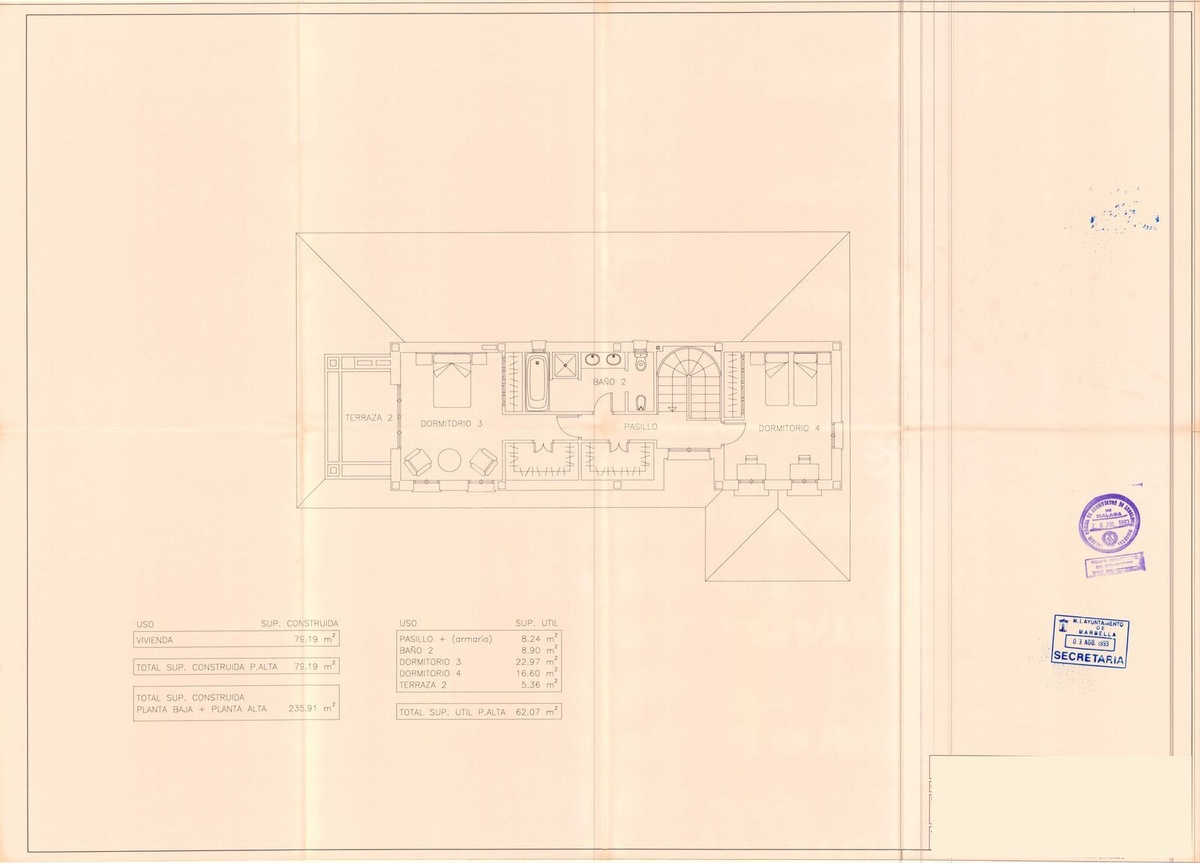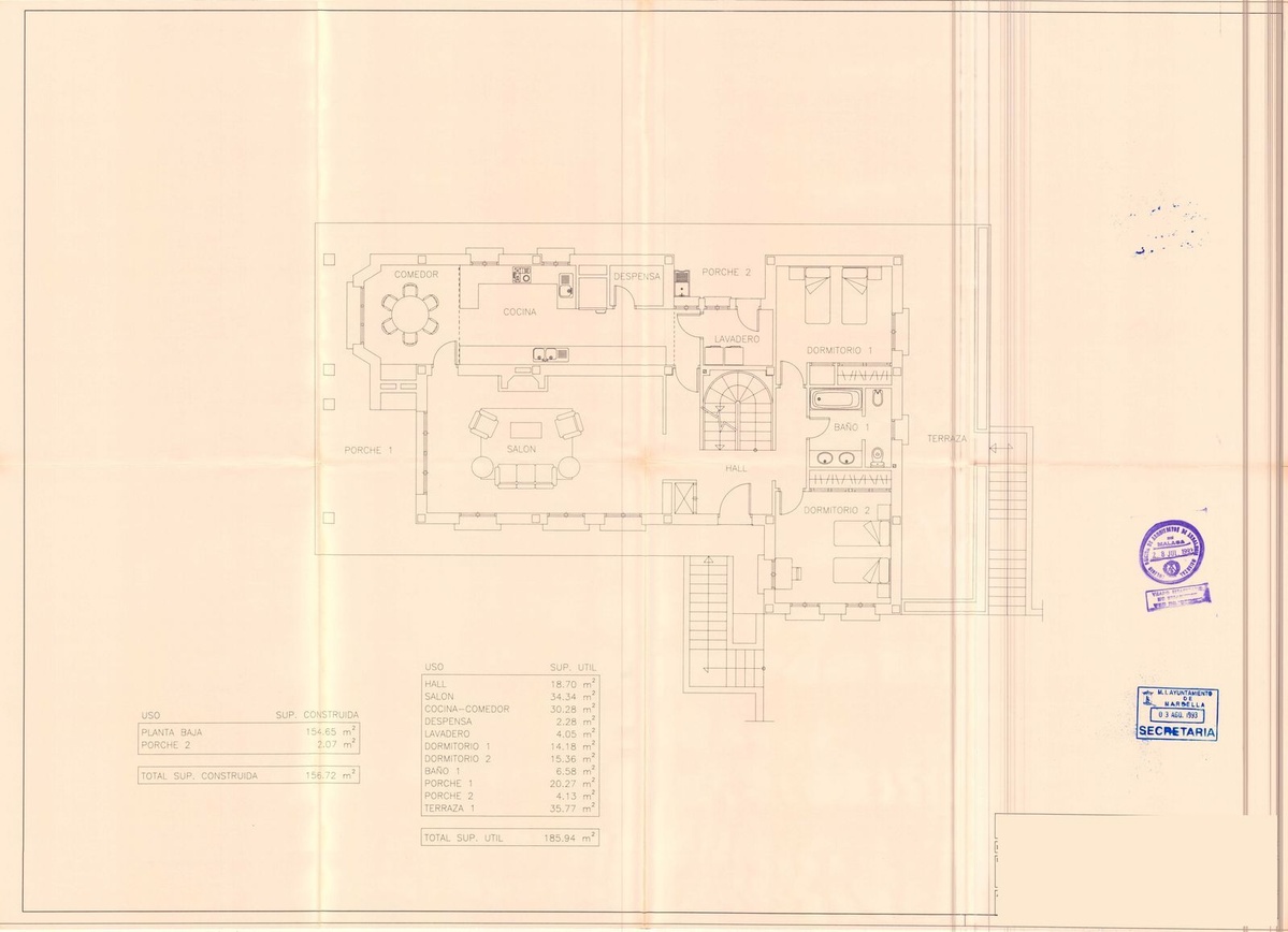 Rustic style villa distributed over three floors, located in a quiet area of Elviria. The property has four bedrooms, two bathrooms and a toilet, a fully fitted kitchen and a spacious living room. It is characterized by its high ceilings, its Andalusian style and the large basement with an area of 200 m2. It also has a garage with capacity for three cars.