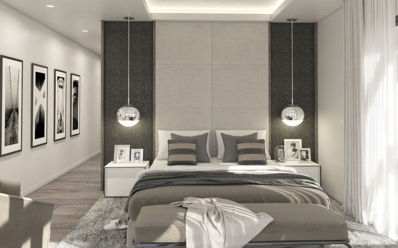 Master bedroom suite with luxury en suite bathroom and terrace access over the pool towards the sea and golf. Two further bedrooms both with en suite bathrooms. Gallery hallway overlooking the lounge area below.
