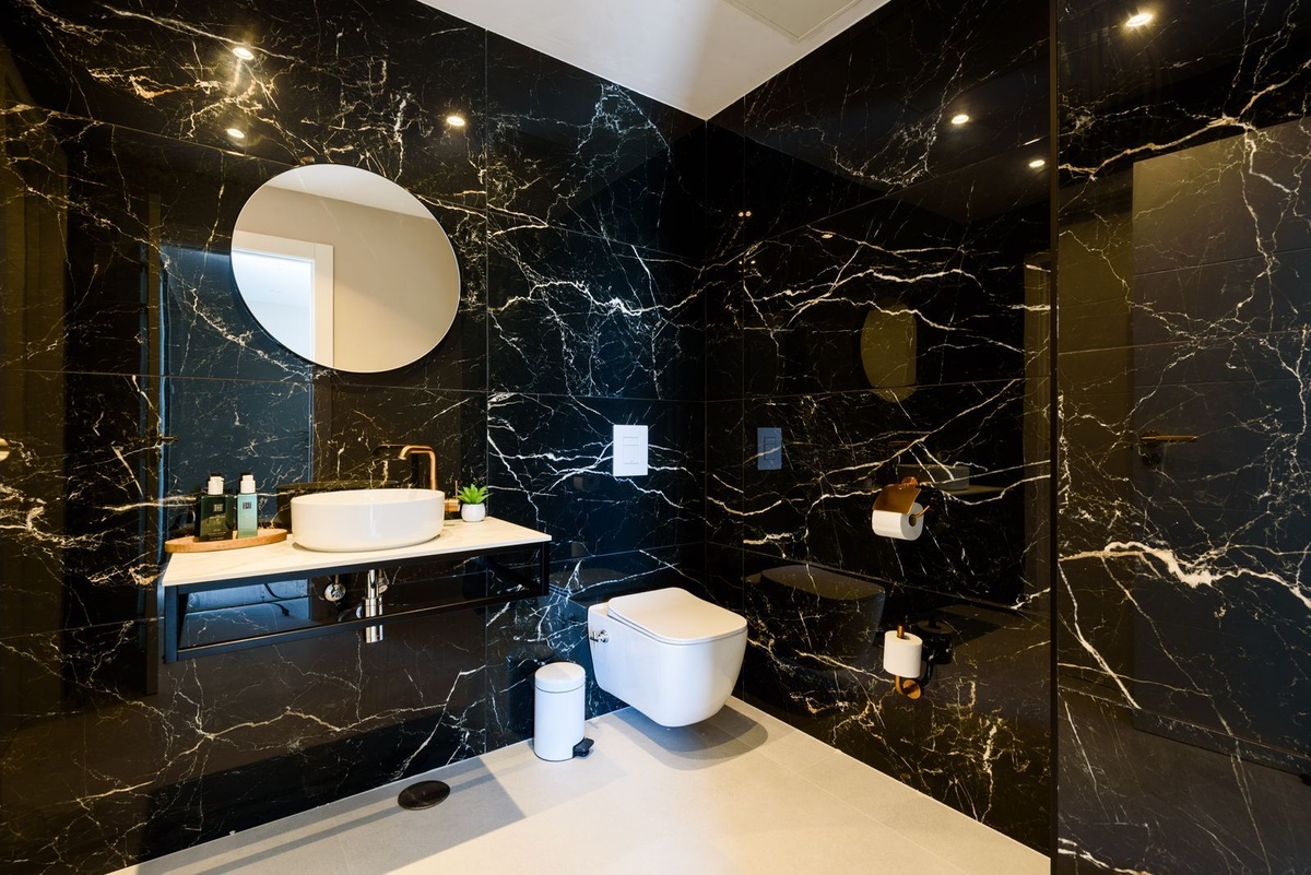 This unique luxury, very modern high-tech villa yet embracing Andalusian charm, is located first line golf to the Santa Maria Golf course offering breathtaking sea views. This very spacious property, situated on a large plot of 1335m2, is fully renovated to the highest standards. It offers seven bedrooms, seven bathrooms and a guest toilet; a home cinema, gym and spa. Due to its hillside location, the villa is divided over five floors which are all accessible via the indoor elevator. The driveway has a carport with solar panels, with enough space for two cars. On the street level, the garage for another two cars is located with an electric car charger, as well as one of the main entrances to the house. On this floor the storeroom and laundry room are located.