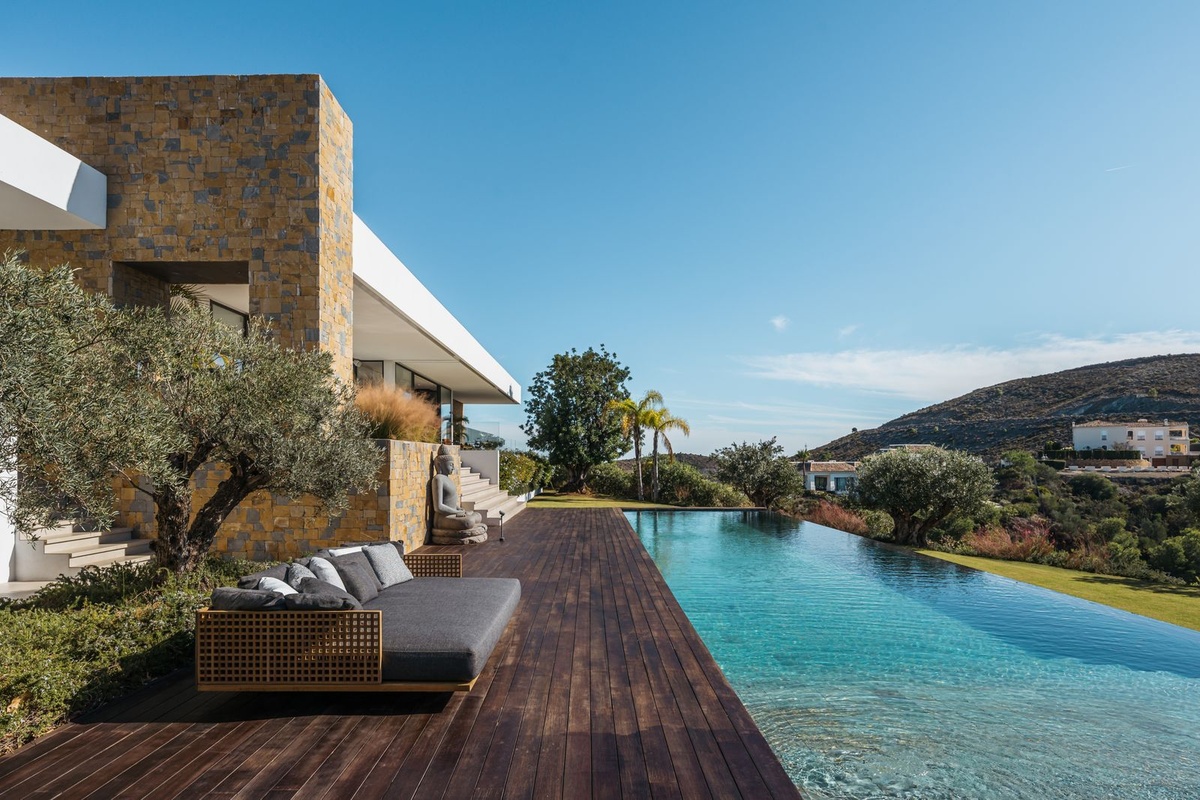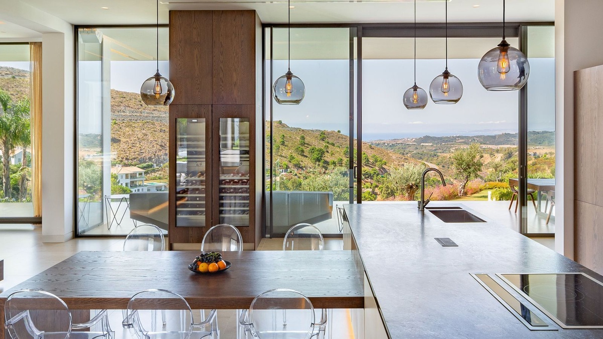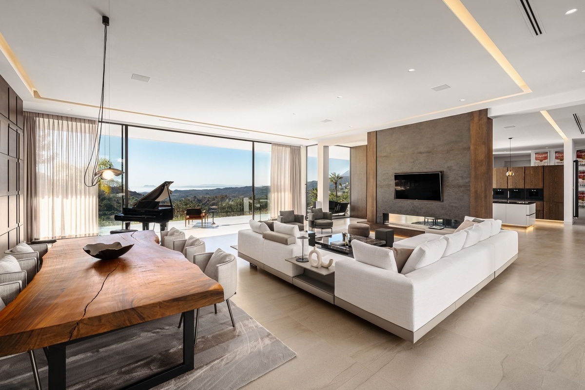 Dit uitgestrekte huis van 1.021 m² ligt op één verdieping en biedt een fantastisch uitzicht op het zuiden op de Middellandse Zee en Gibraltar dankzij de kamerhoge ramen en het discrete achterterras.