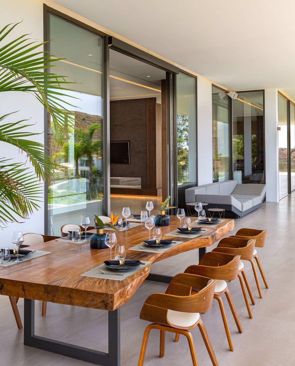 Elke kamer wordt overspoeld met licht dankzij de hoge ramen waardoor het omringende subtropische landschap naar binnen kan stromen en tegelijkertijd ultieme privacy en veiligheid wordt bereikt.