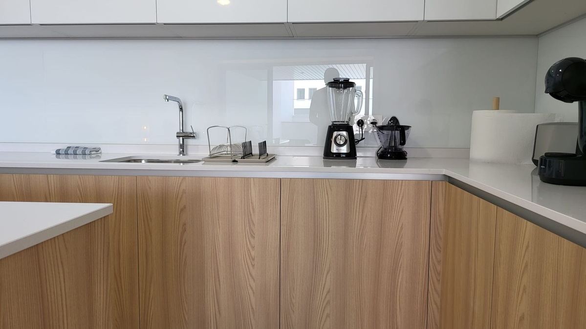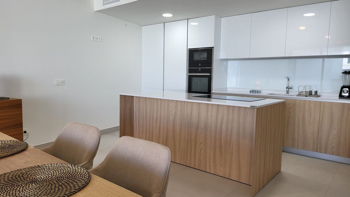 De keuken is open voor de woonkamer, volledig uitgerust met neff -apparaten en heeft een mooi eiland waar de keramische kookplaat is en de kap is geïntegreerd in het plafond.