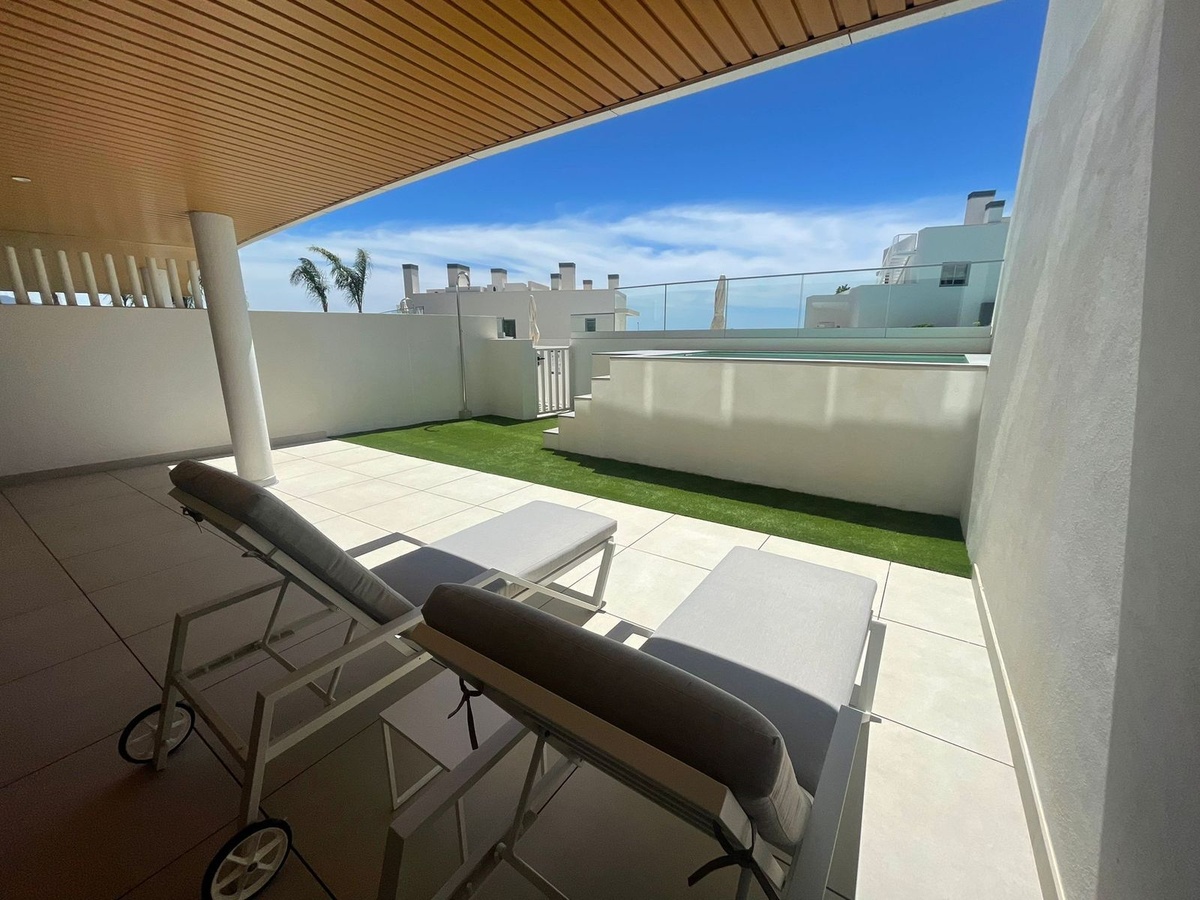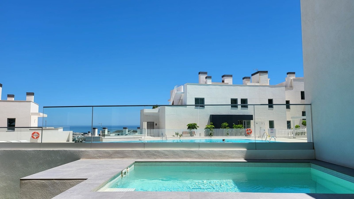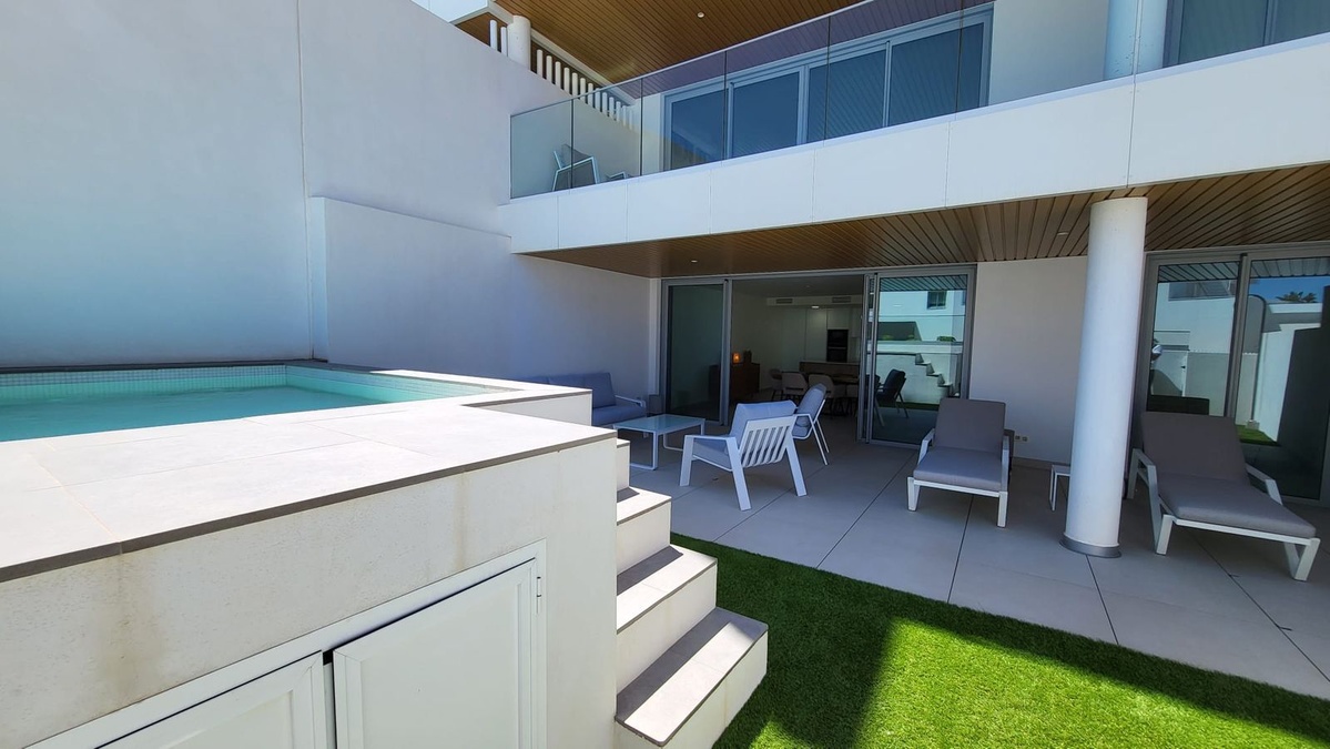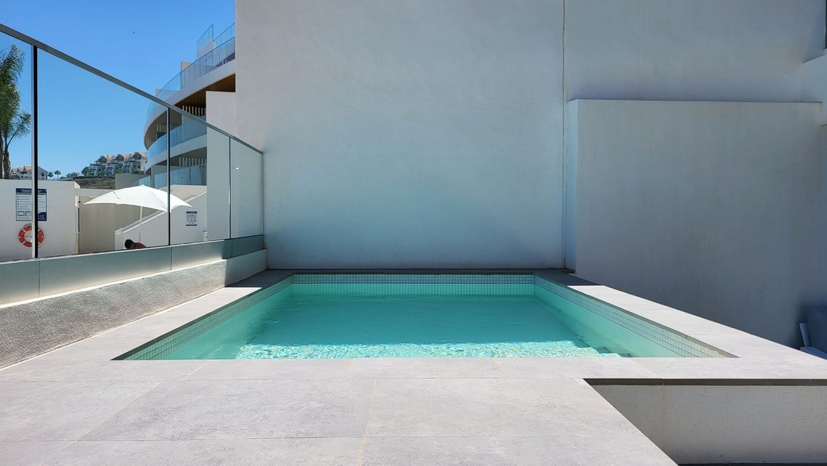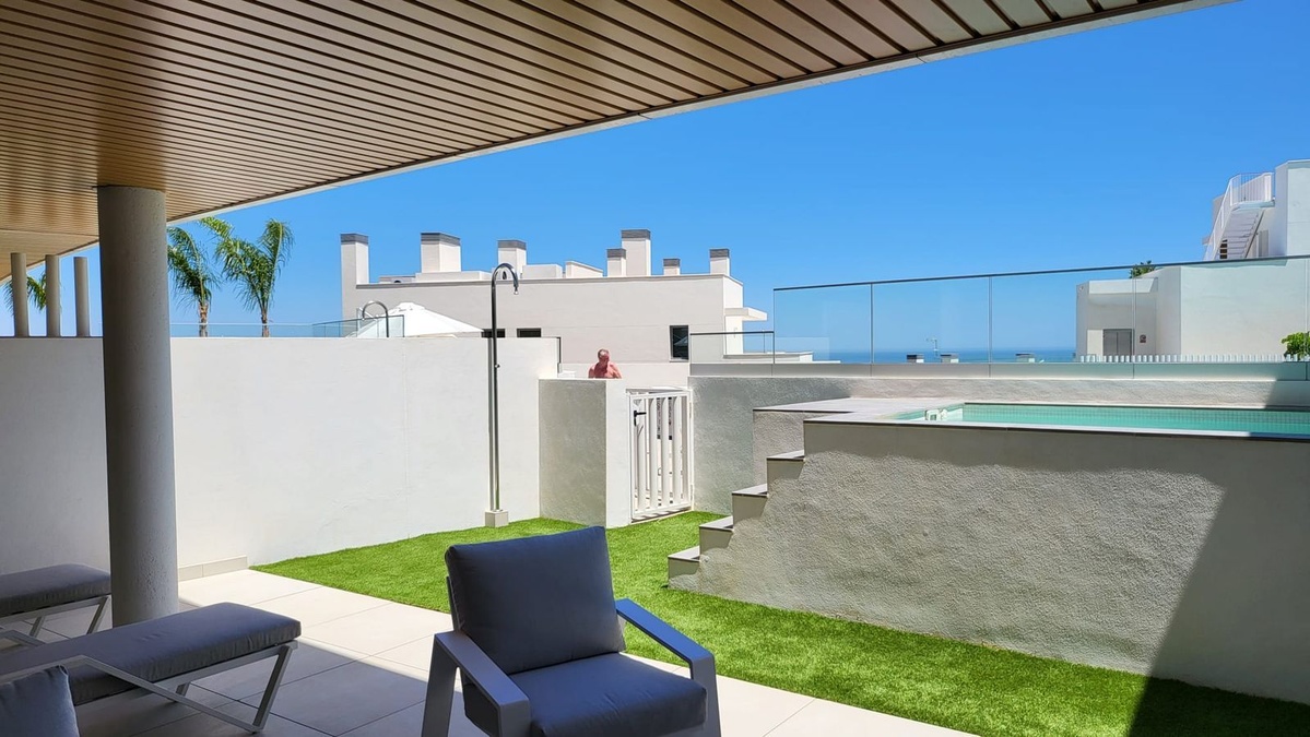 Prachtig appartement op de begane grond met een privézwembad, tuin en zwembad, in het zuiden gezichten en uitzicht op de zee in één woningen, Calanova Golf, La Cala de Mijas.