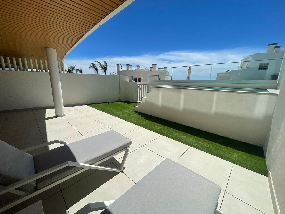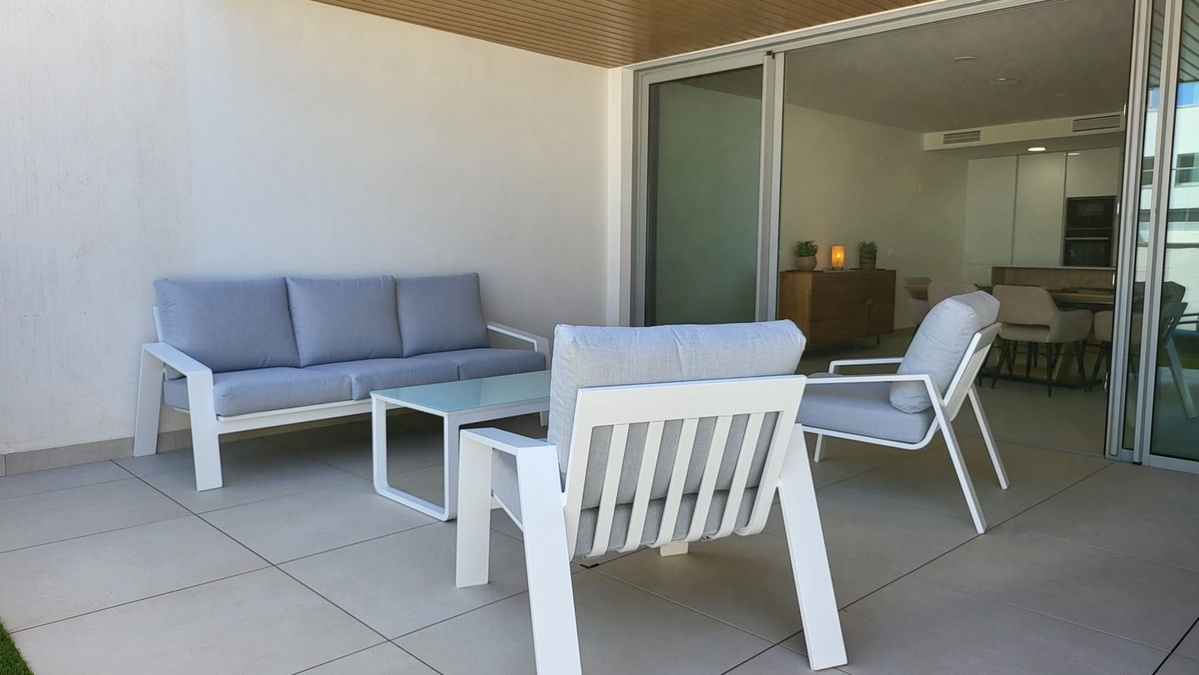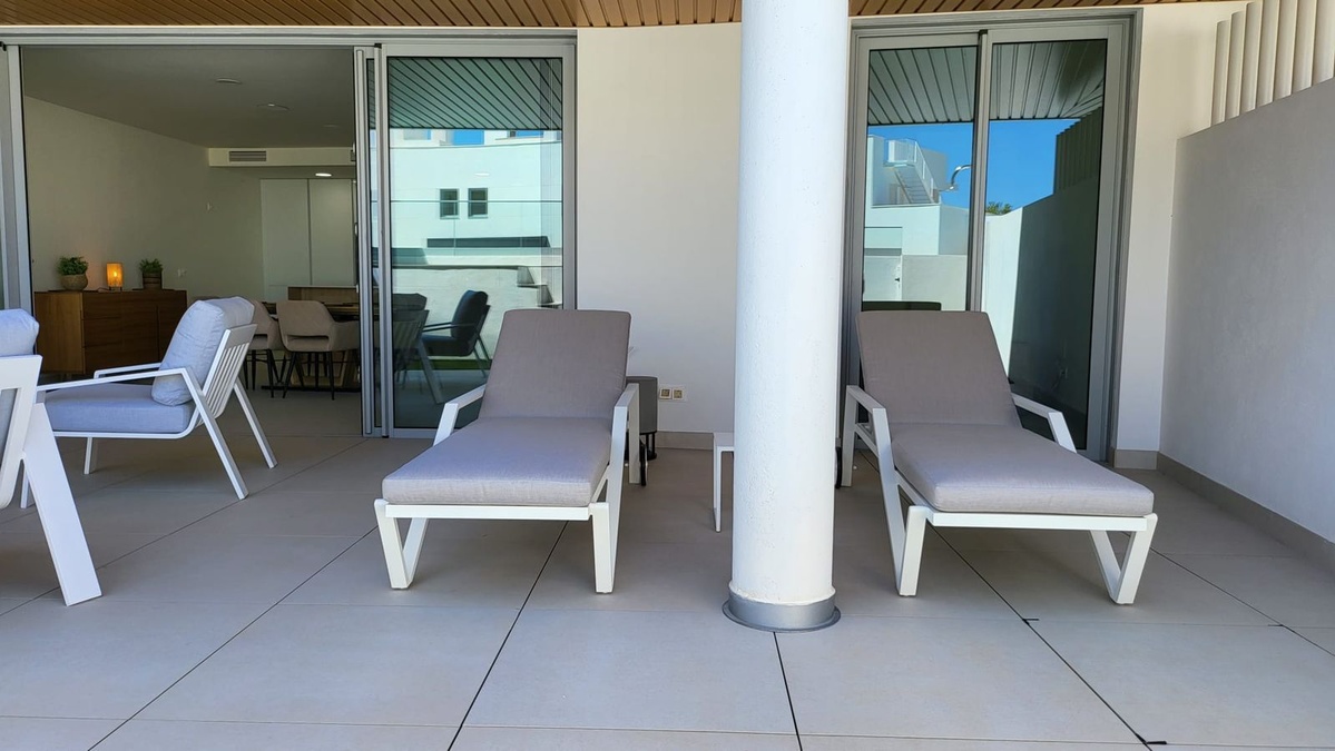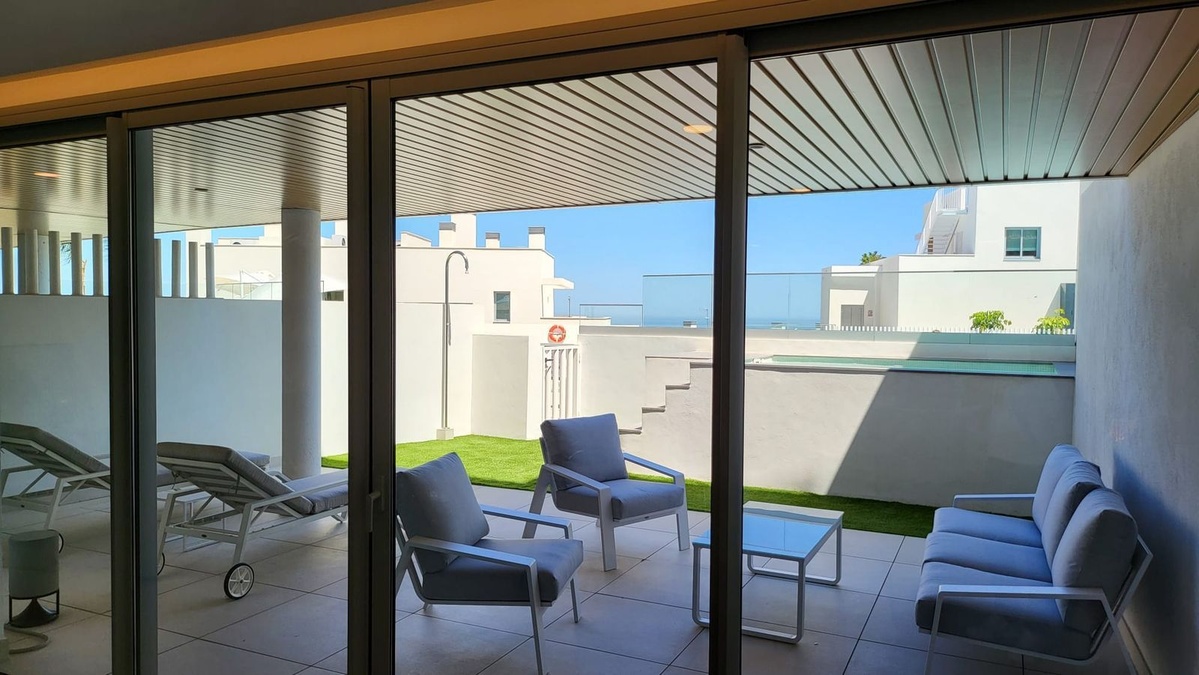 Prachtig appartement op de begane grond met een privézwembad, tuin en zwembad, in het zuiden gezichten en uitzicht op de zee in één woningen, Calanova Golf, La Cala de Mijas.