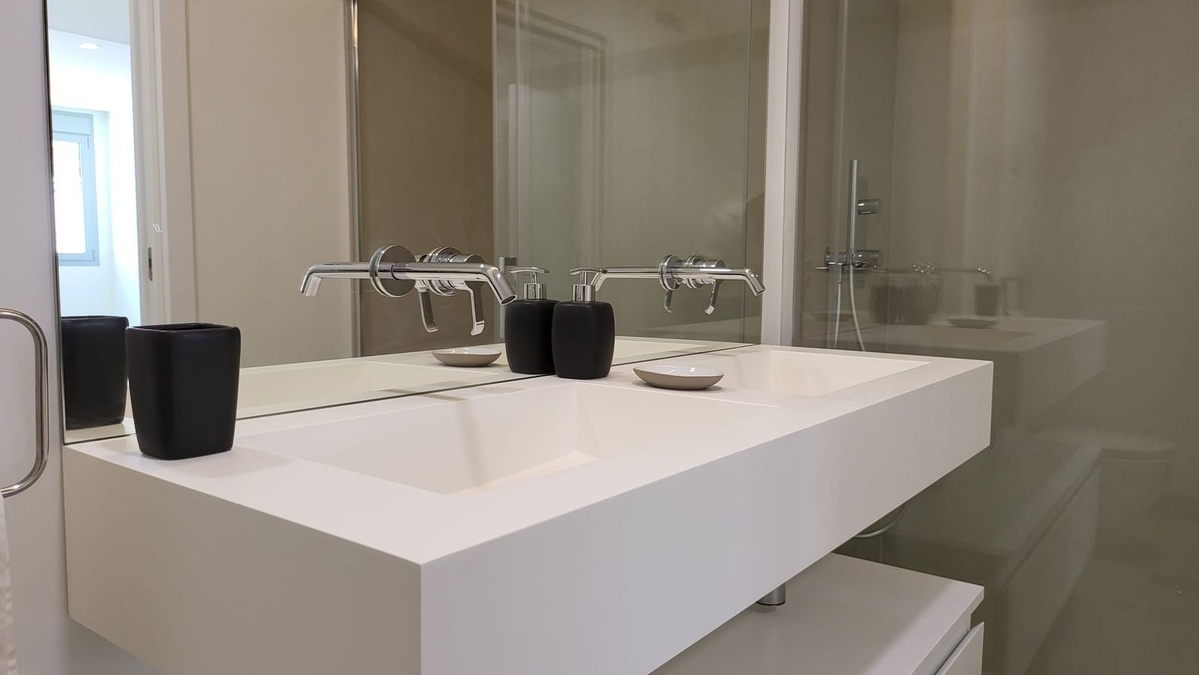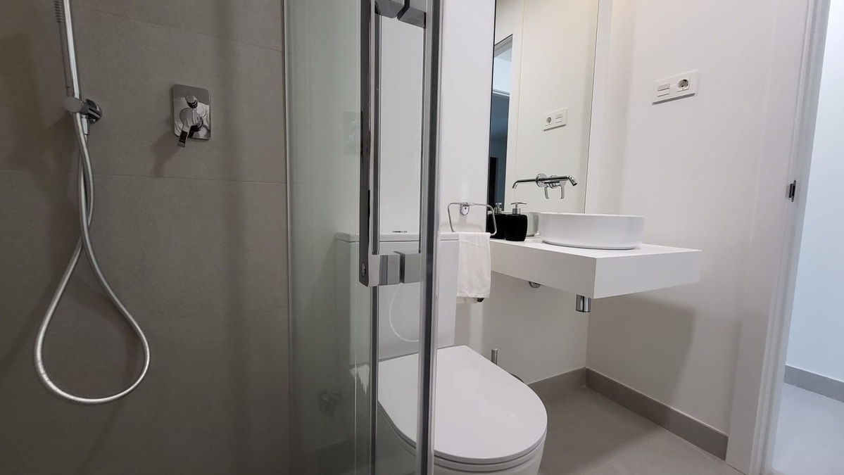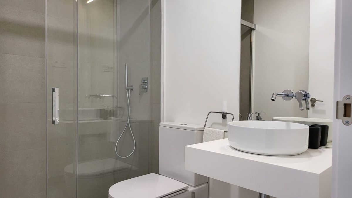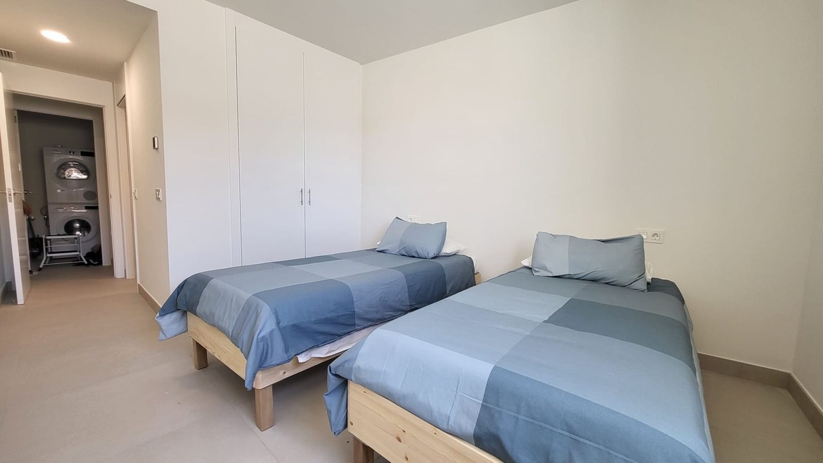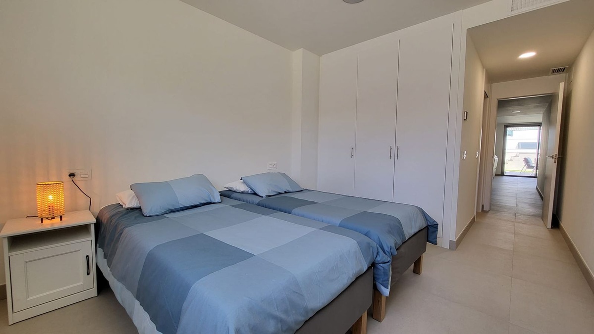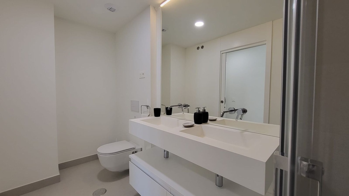 Dit appartement heeft drie ruime slaapkamers met gepaste kasten en volledige en-suite badkamers, behalve dat er een gasttoilet is.