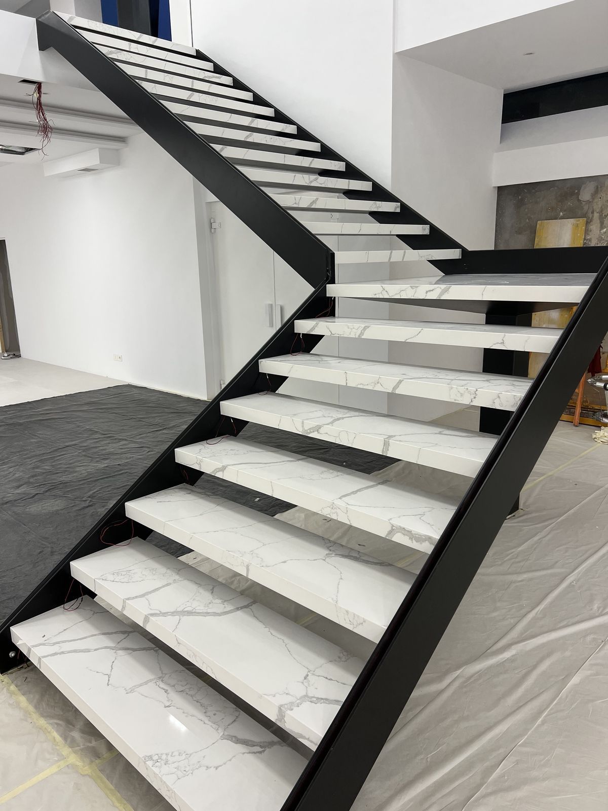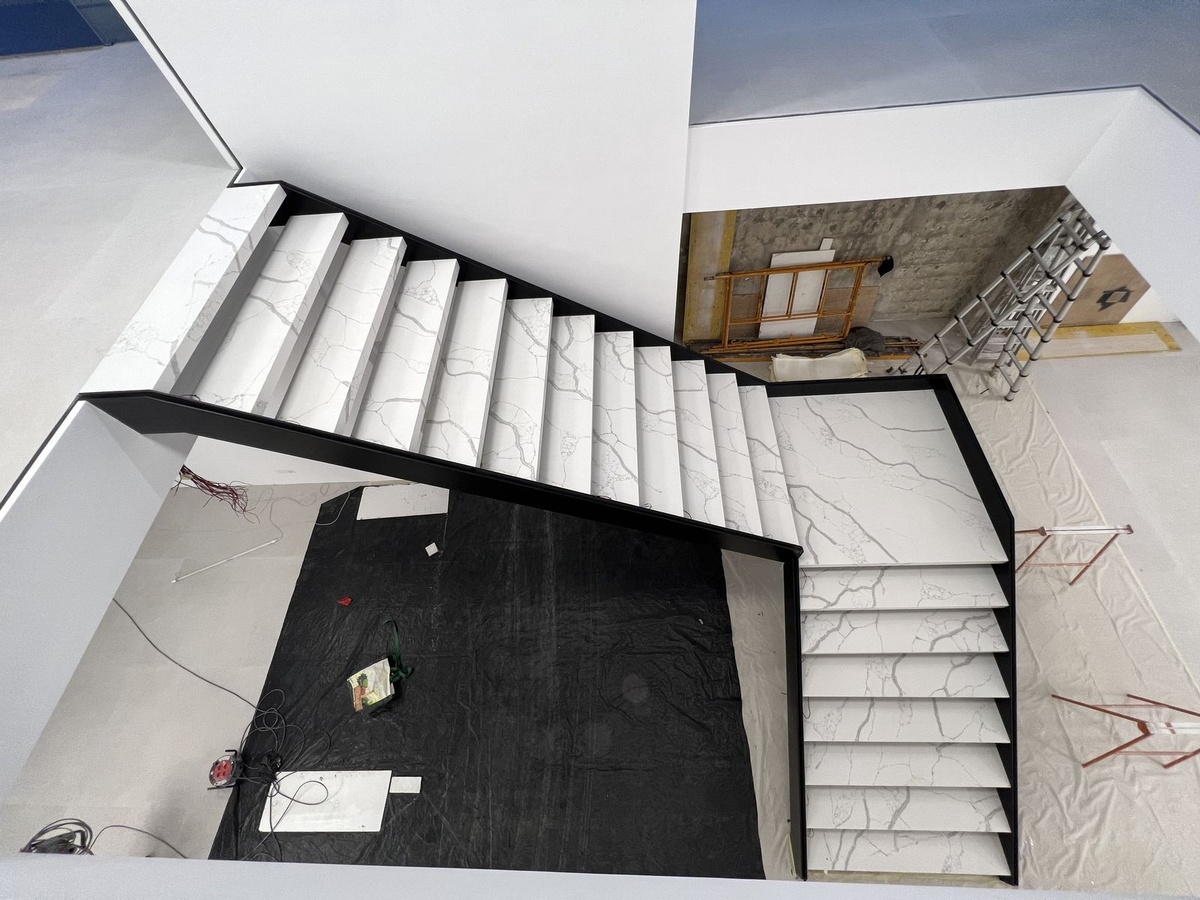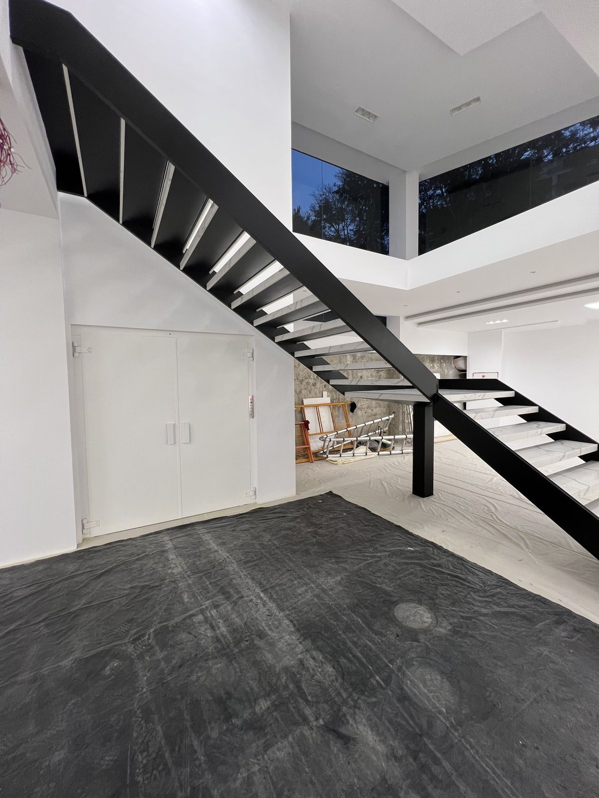 5. Brand new iron stair structure with the treads covered in quartz and led lights illuminating each step