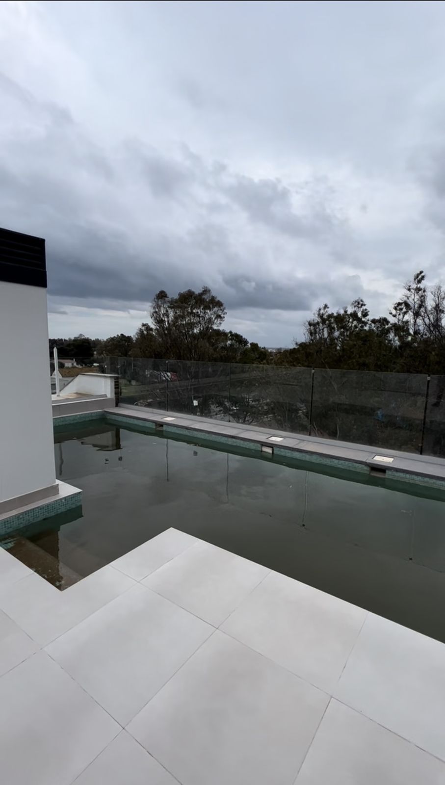 Het gebouw heeft een zwembad op het dak van het terras met zonnepanelen.