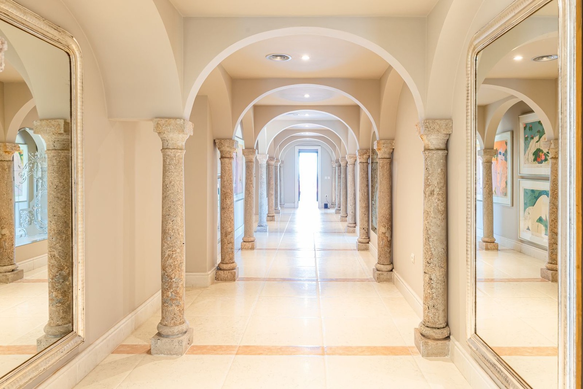 Met bijna 1200m2 heeft deze geweldige woning 5 slaapkamers met 5 badkamers en suite, een gastentoilet, een woonkamer met dubbelhoge plafonds, een aparte eetkamer, een keuken met twee dubbele koelkasten, twee ovens, twee vaatwassers, een enorm solarium met een verwarmd privézwembad op het dak en 360° uitzicht op de zee, de bergen en de golfbaan.