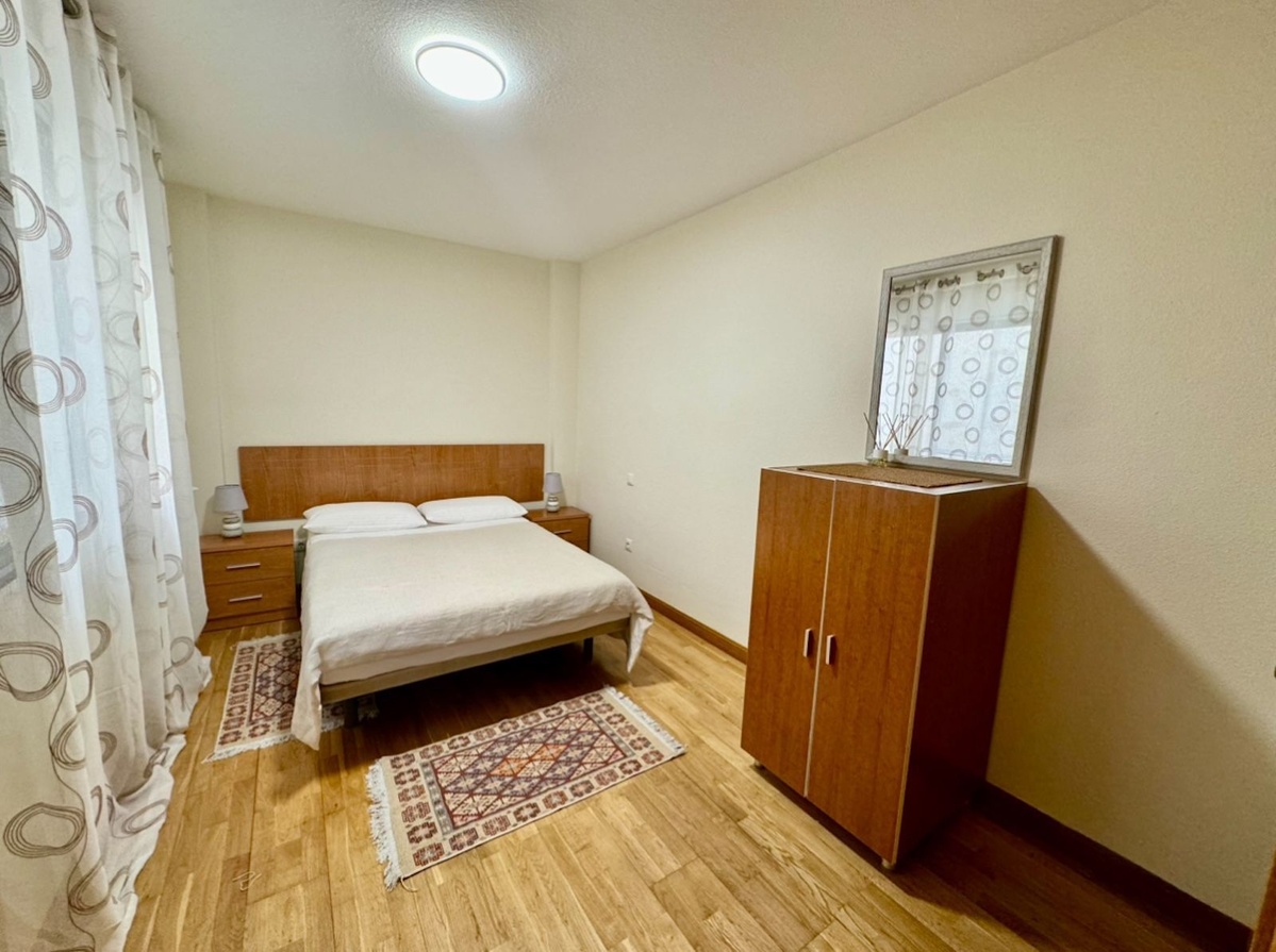 Spacious living area with open plan fully equipped kitchen. One bedroom with a master bed, living area with sofa bed for one person.