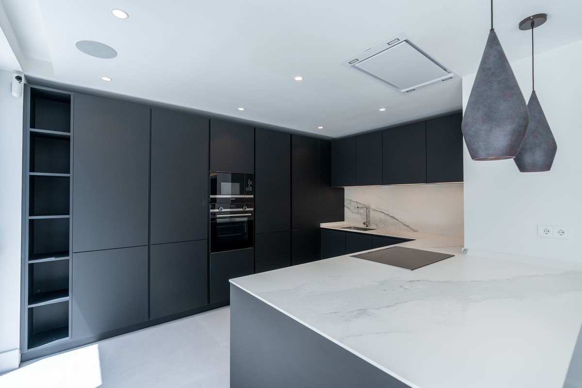 een grote en comfortabele keuken en een ruime woon-eetkamer