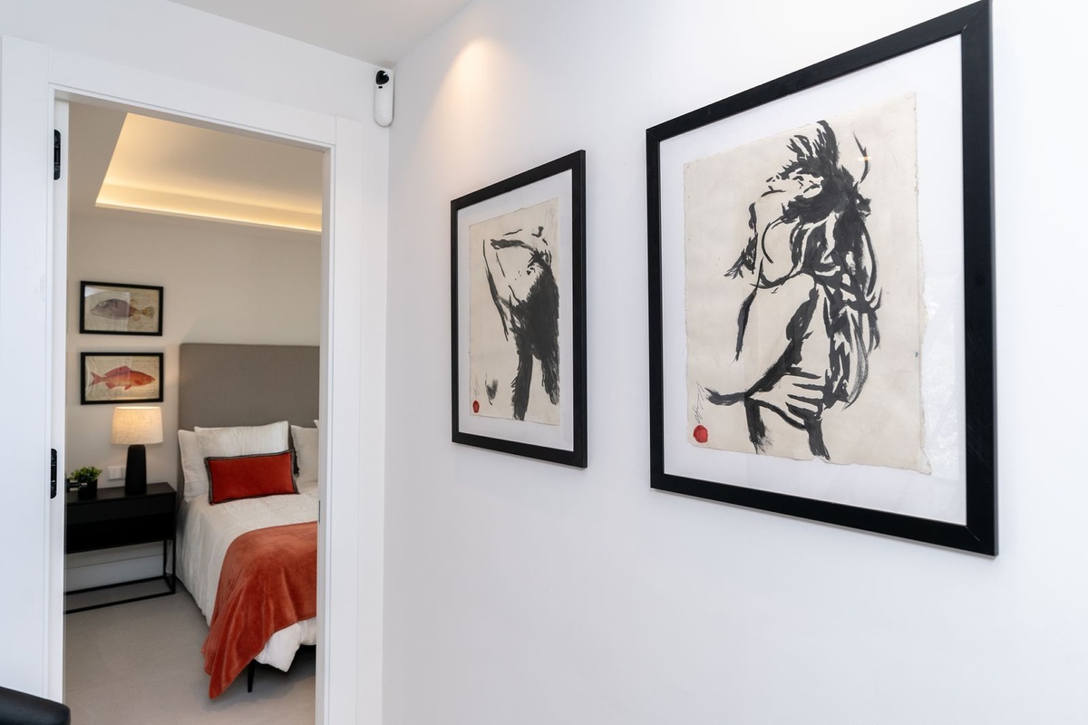 De zorgvuldige decoratie is zichtbaar in elke hoek, met luxe meubels en artistieke accenten die de algehele sfeer versterken.