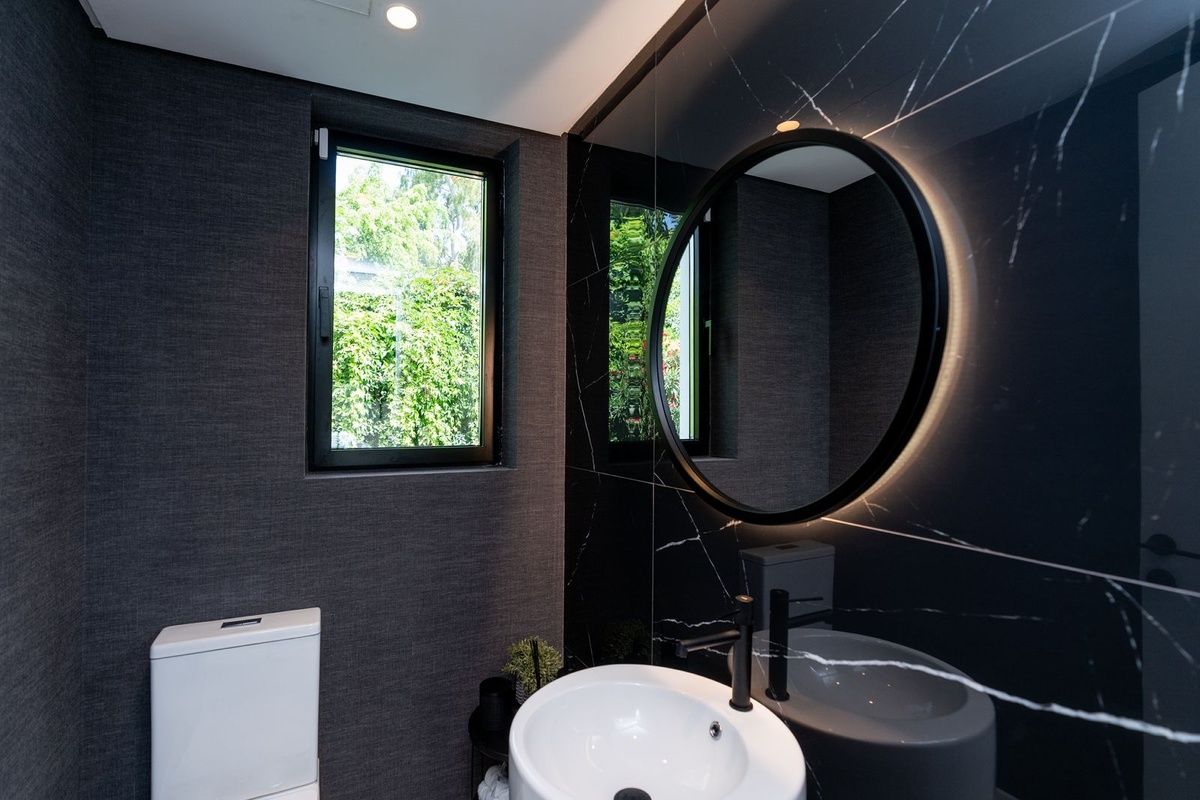 Grote ramen omlijsten het panoramische uitzicht en nodigen natuurlijk licht uit om de woonruimtes te verlichten.