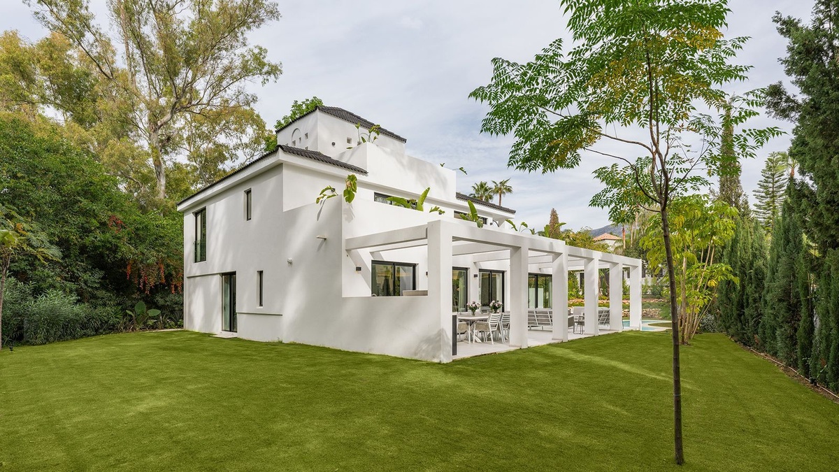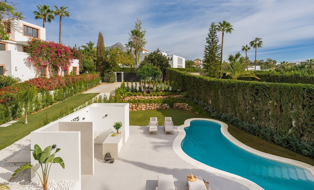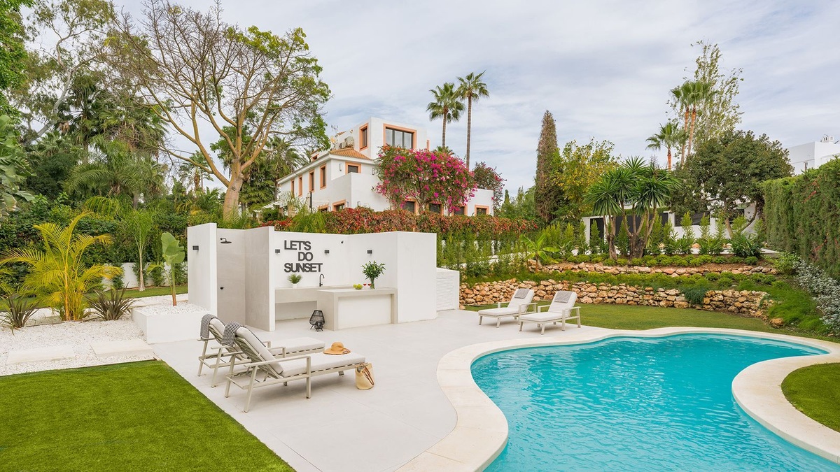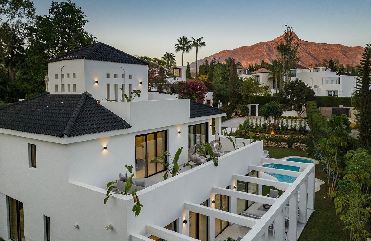 Een prachtige villa met 5 slaapkamers in Las Brisas, de golfvallei van Nueva Andalucia met een adembenemend uitzicht op de berg La Concha.
