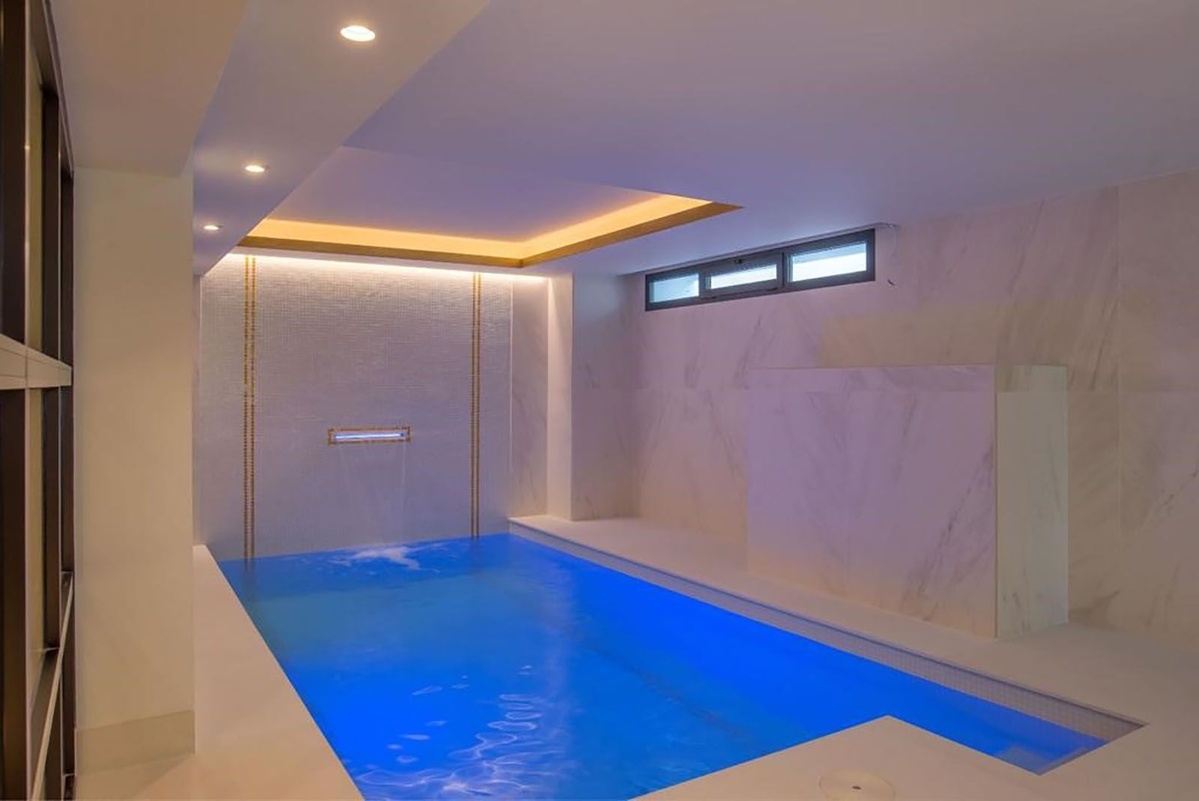 Op de benedenverdieping van de villa vind je het binnenzwembad en de aangrenzende fitnessruimte. Er is een grote tv-/speelkamer en nog twee slaapkamers en een badkamer.