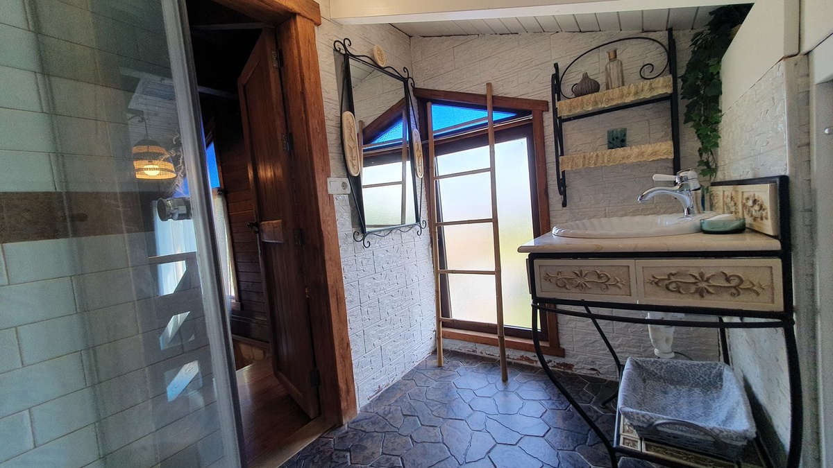 Het eerste huis, met zijn betoverende houten ontwerp, heeft een badkamer en drie slaapkamers, evenals een ruime woonkamer, keuken, terras en barbecueplaats.