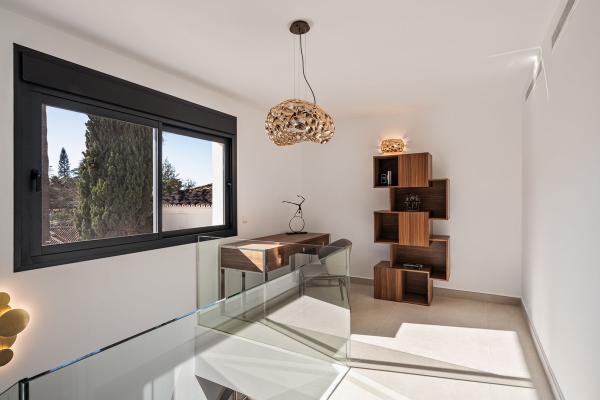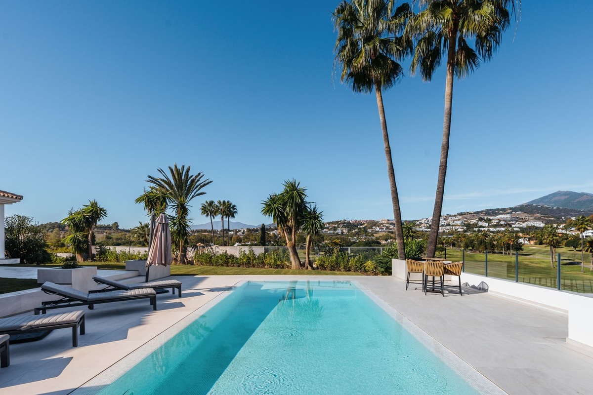 Deze onlangs gerenoveerde prachtige villa met 5 slaapkamers te koop in Los Naranjos Golf, Nueva Andalucia, is gelegen in een rustige doodlopende straat, wat zich vertaalt in schone lucht en de afwezigheid van verkeerslawaai.