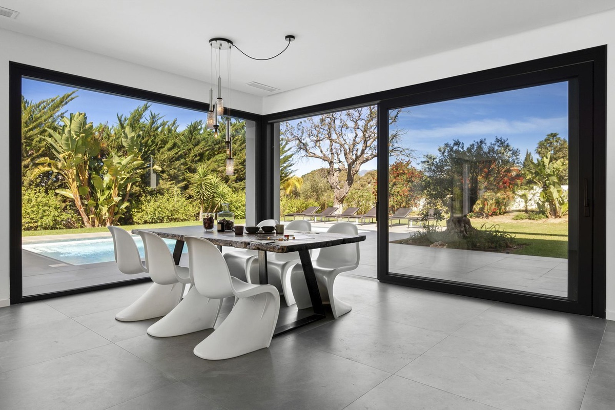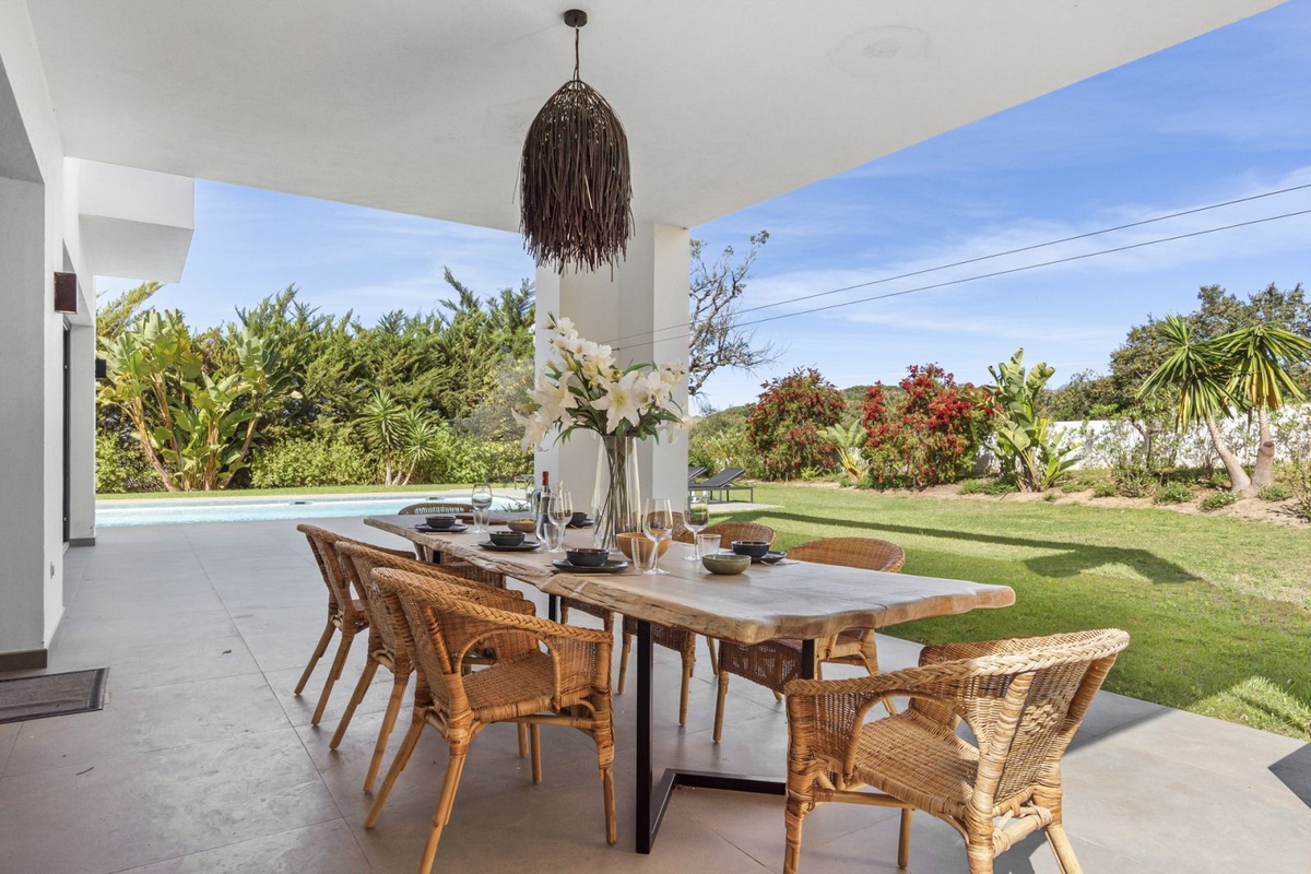 De ruime keuken en eetkamer zijn perfect voor het bereiden van maaltijden en het ontvangen van gasten. Het overdekte terras met eettafel biedt een schilderachtige omgeving om te genieten van maaltijden met uitzicht op het zwembad en de tuin.