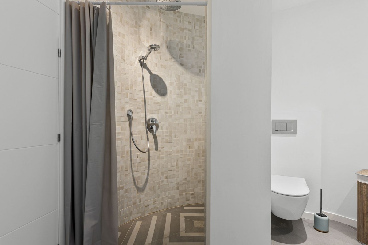 De indeling van de villa, met één slaapkamer op de begane grond en drie extra slaapkamers op de bovenverdieping, allemaal met ensuite badkamers en privéterrassen, biedt zowel privacy als comfort voor de gasten. De tuin en het zwembad lijken de ideale plek om te ontspannen en tot rust te komen, met voldoende ligbedden om te loungen en te genieten van de zon.