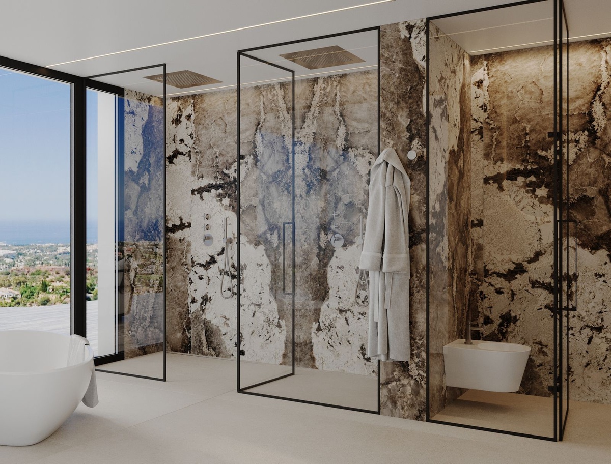 Het project ligt bovenop La Quinta in Benahavis, aan de zuidelijke rand van El Madronal, en is ontworpen volgens het hoogste niveau van luxe woontrends, als een eindeloze dialoog tussen huis, lucht en zee.