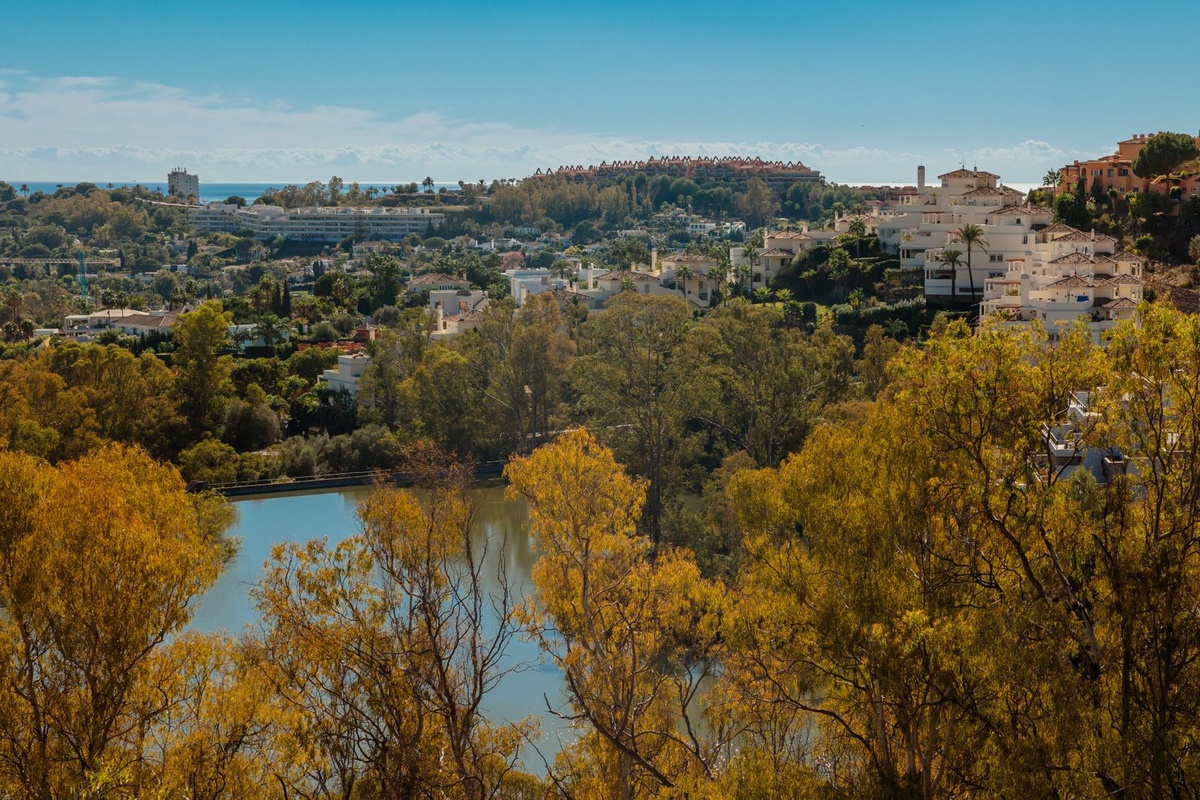 Gelegen in een van de meest exclusieve gebieden van Marbella, Nueva Andalucía, is dit huis een toevluchtsoord waar je vanaf de prachtige terrassen kunt genieten van het beste uitzicht op de Middellandse Zee en een schilderachtig meer. Golfliefhebbers zullen bovendien blij zijn met de nabijheid van prestigieuze golfclubs zoals Los Naranjos Golf Club, Real Club de Golf Las Brisas, Club de Golf Aloha en La Quinta Golf & Country Club. De stranden van Puerto Banús en Nueva Andalucía liggen binnen handbereik en staan garant voor onvergetelijke dagen zon en zee.