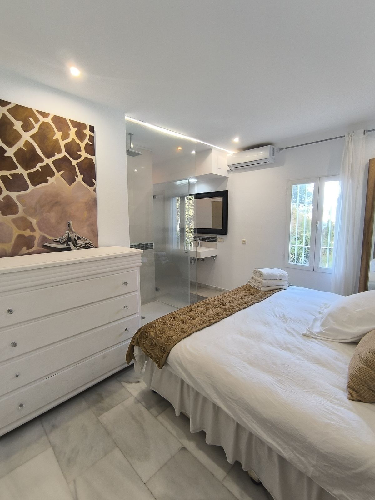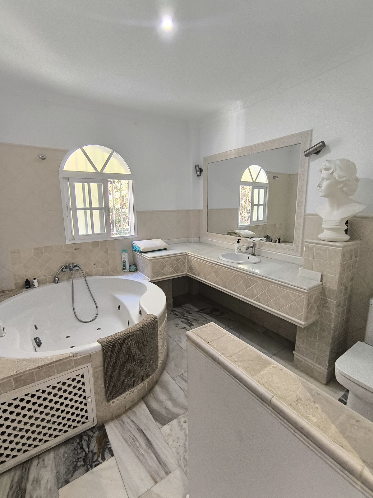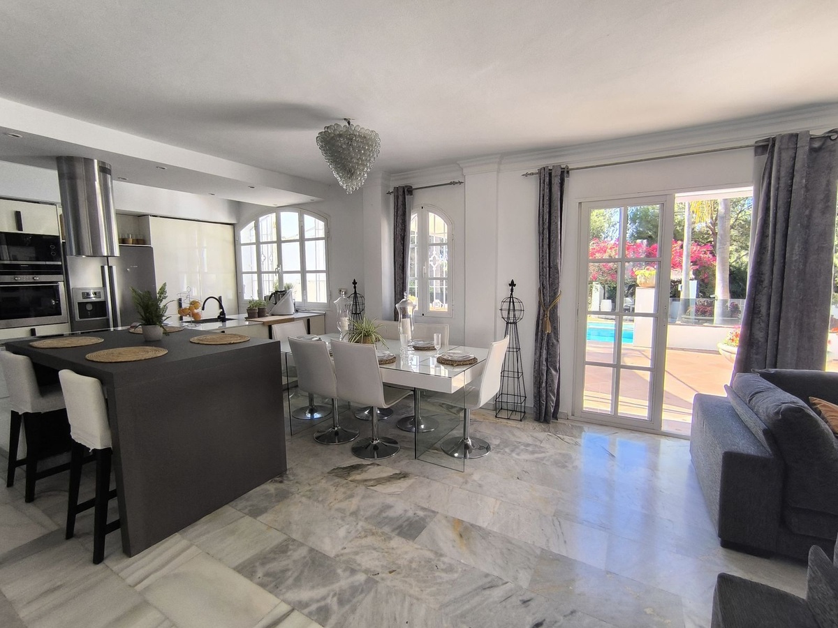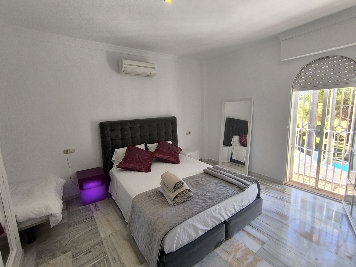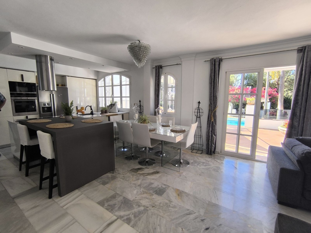 Ontdek de villa van je dromen aan de Costa del Sol! Deze spectaculaire privéwoning biedt je alles wat je nodig hebt om in luxe en comfort te leven. Met 5 ruime slaapkamers, elk met een eigen en-suite badkamer, waarvan een met een ontspannende jacuzzi, geniet je van de privacy en het comfort dat je verdient. De lichte keuken met prachtig uitzicht op het zwembad is de perfecte plek om je te inspireren en heerlijke maaltijden te bereiden.