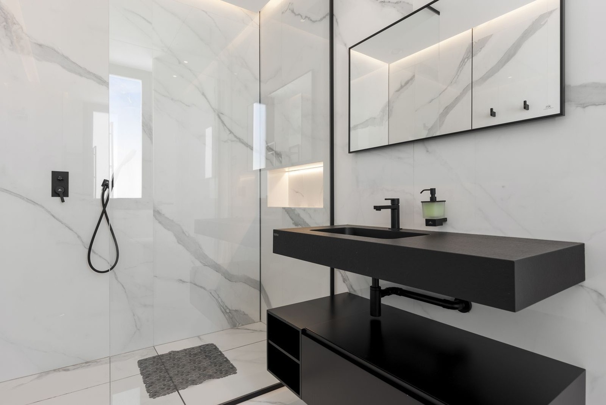 Met vier en-suite slaapkamers, elk ontworpen voor comfort en privacy. Een speciale lift verbindt naadloos alle vier de niveaus van de villa, voor gemakkelijke toegang. Twee extra appartementen in de kelder, perfect voor gasten of personeel.