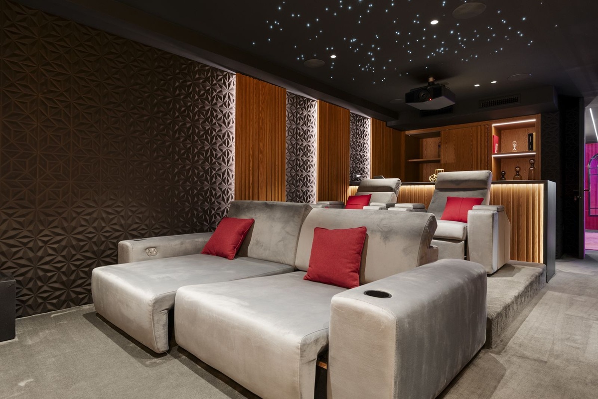 Je eigen privédiscotheek en een professionele bioscoop voor eindeloos plezier. Een ultramodern domoticasysteem door het hele huis dat alles binnen handbereik regelt. Verduisterende gordijnen in alle kamers voor ultieme ontspanning.
