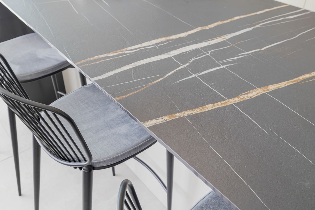 De moderne open keuken beschikt over een grote eethoek en is volledig uitgerust met Bosch inbouwapparatuur.In een aparte bijkeuken/berging staan de Bosch wasmachine en droger.