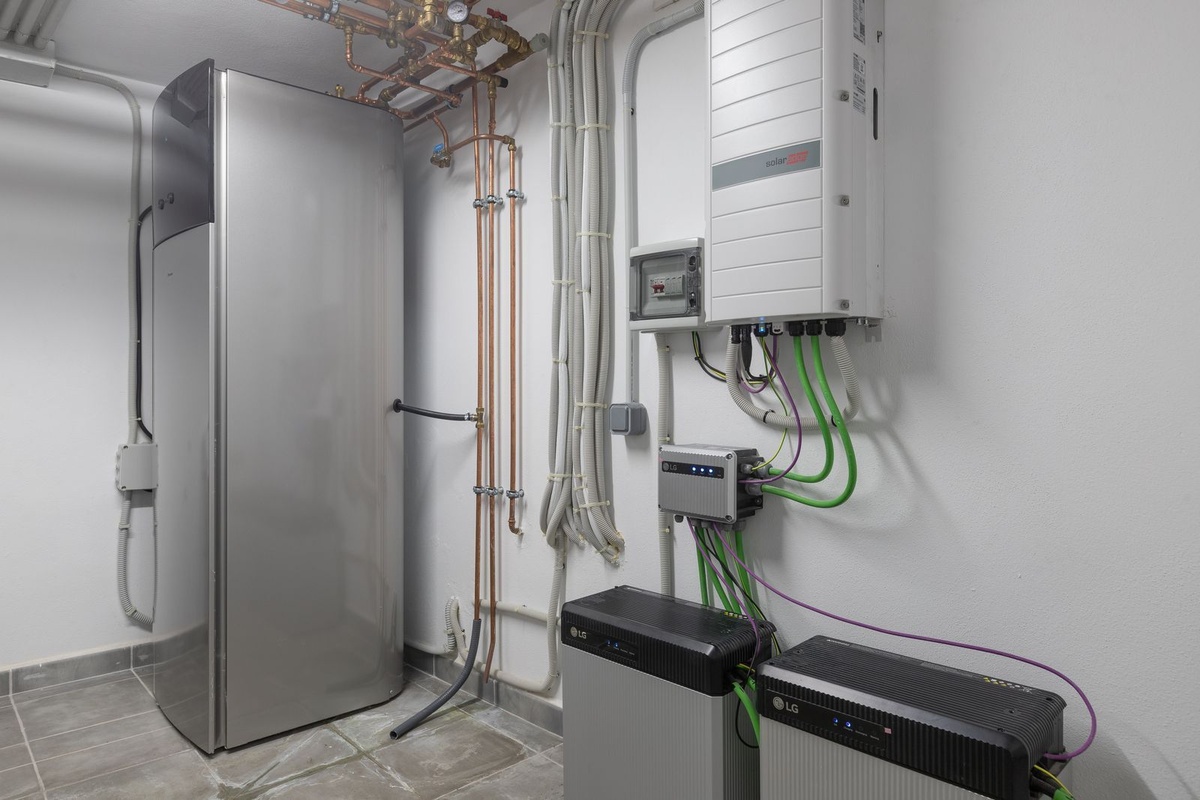 Large 2 car garage, with automatic door, which gives internal access to the villa, storage area, laundry room and machine room where the technical installation can be found.