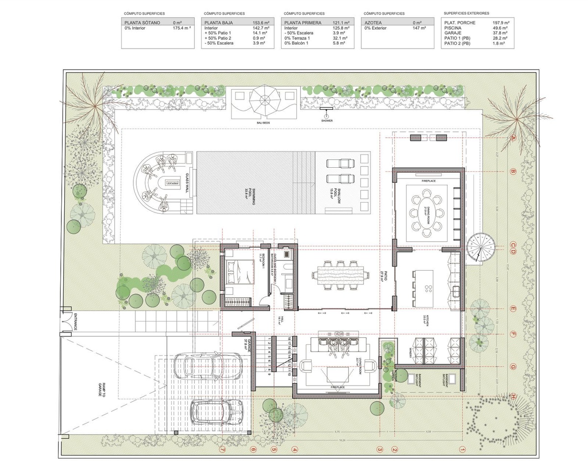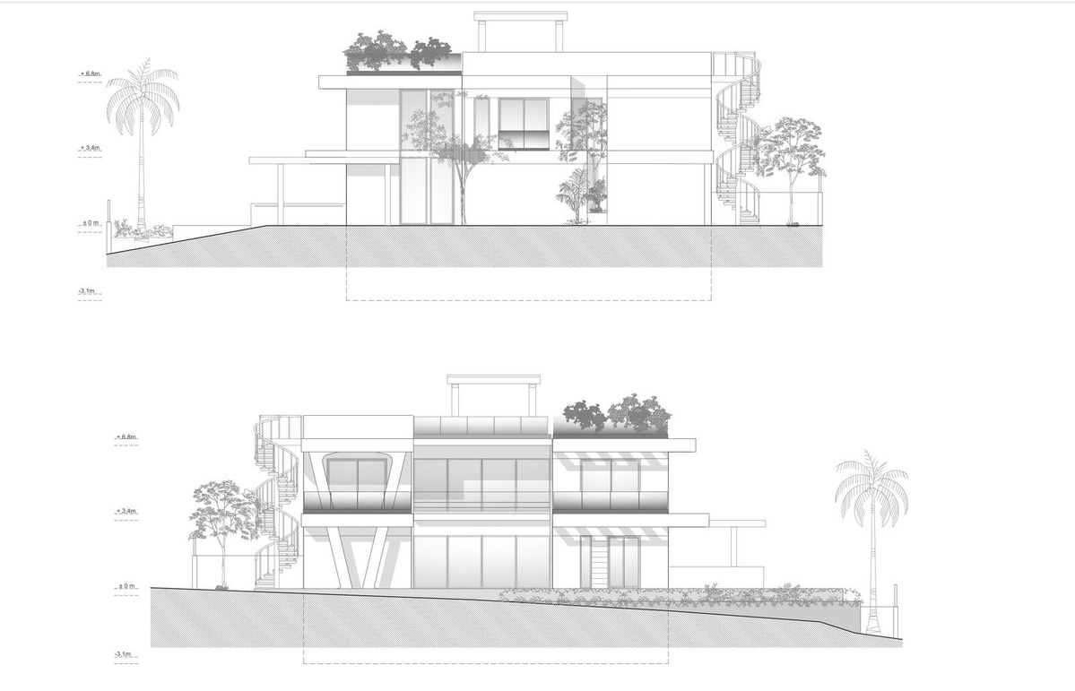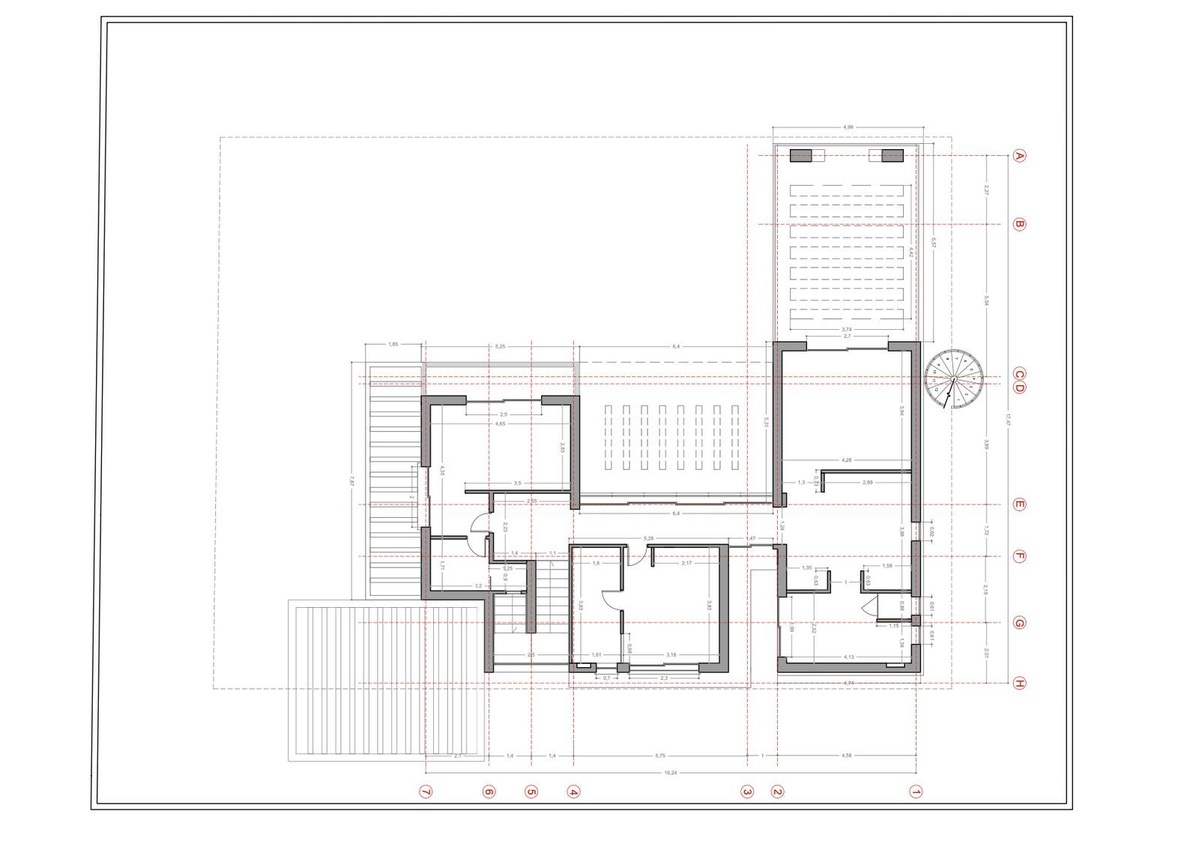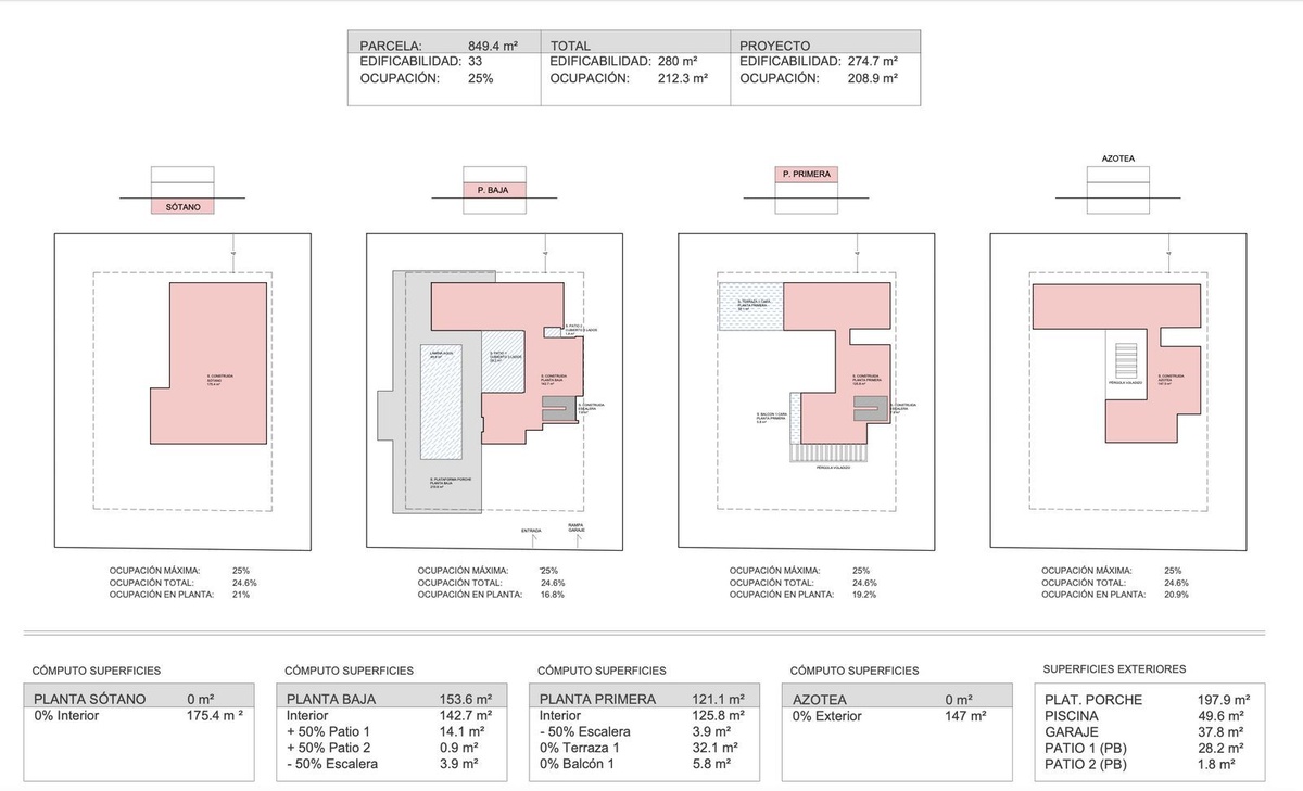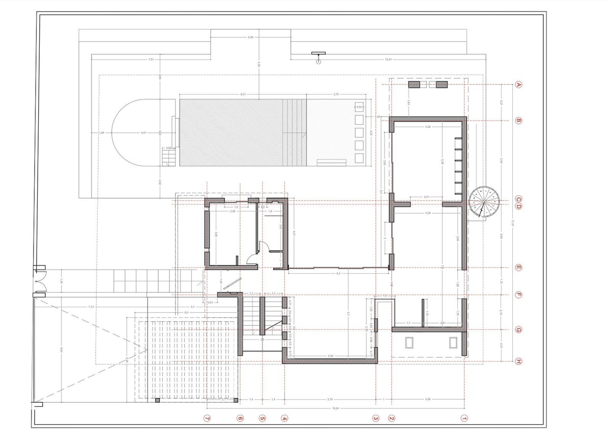 De bebouwbaarheid van het land is een royale 33%, dus naast de 280 vierkante meter die bovengronds kan worden bebouwd, is er ook een enorme kelder, die door de helling van het land kan worden bebouwd met veel natuurlijk licht.